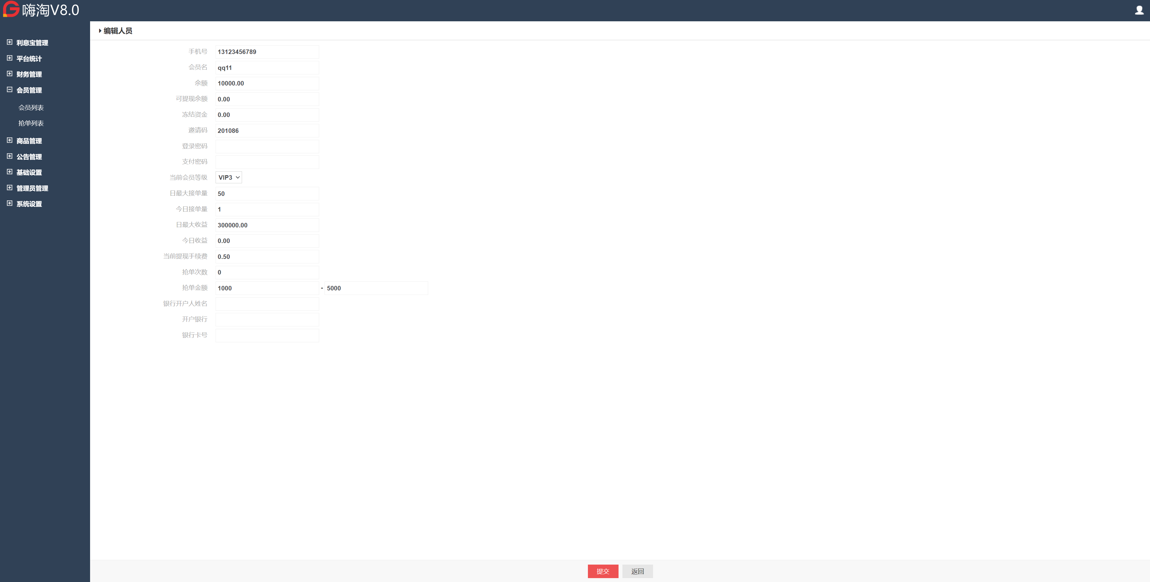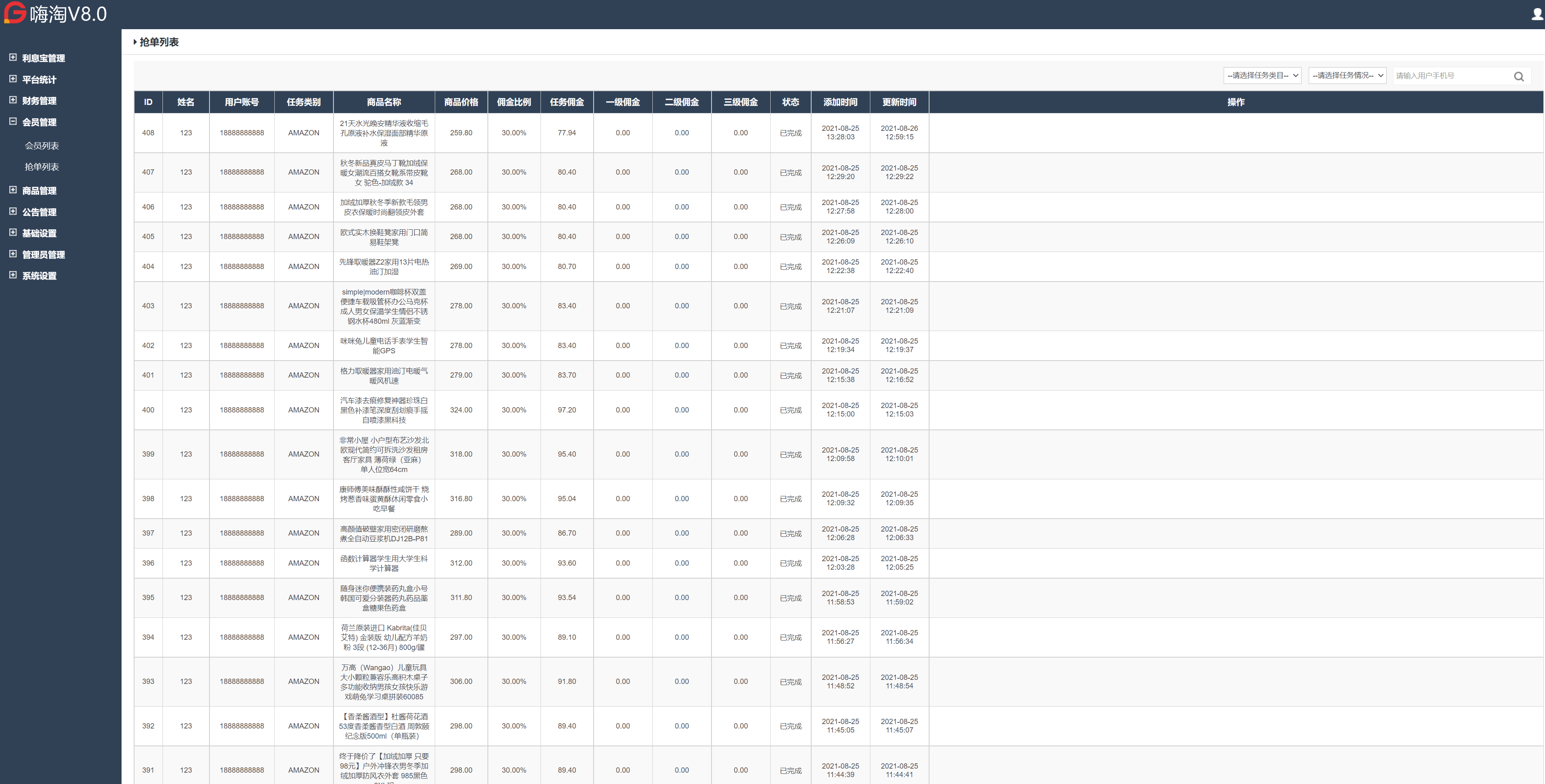 VUE版嗨淘抢单系统/多语言订单匹配系统/海外抢单刷单源码