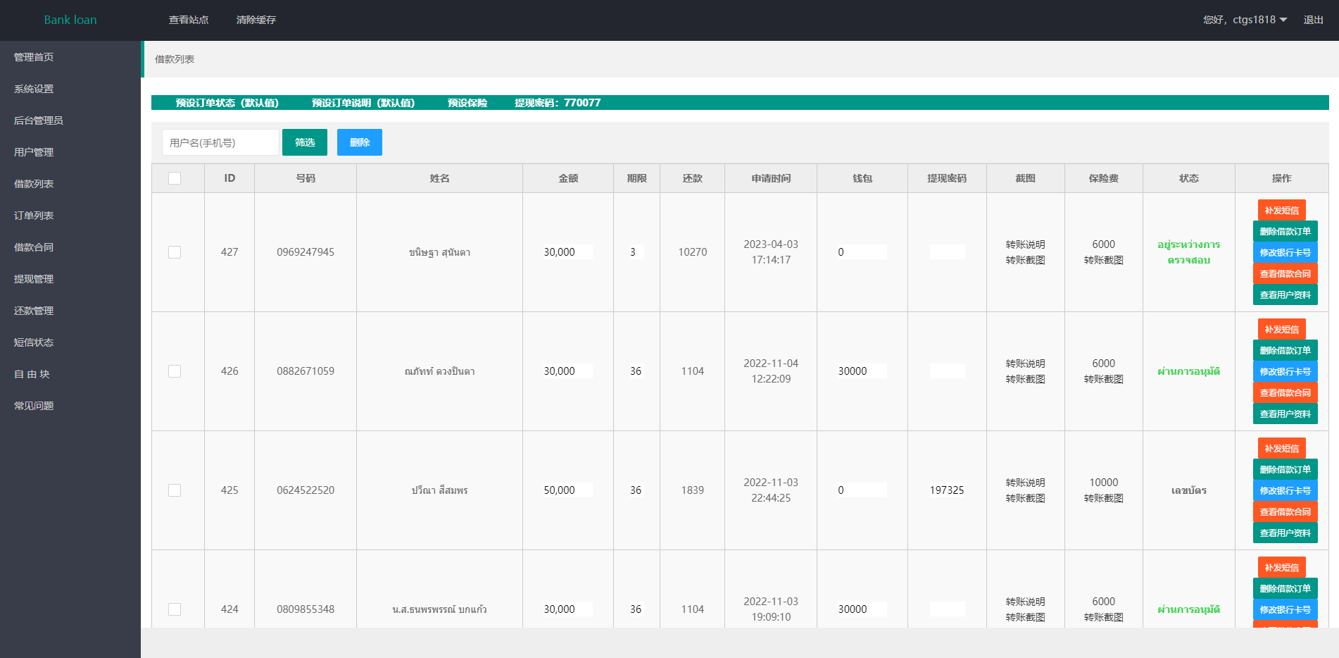 此套是系统别人专门二开的泰国小额贷款系统,系统正常运营