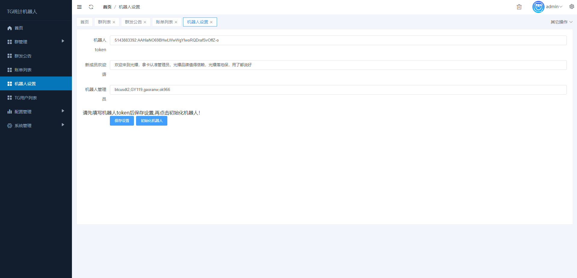 别人定制的TG统计机器人,后台功能强大 账单可后台一键导入,源码全开源无加密
