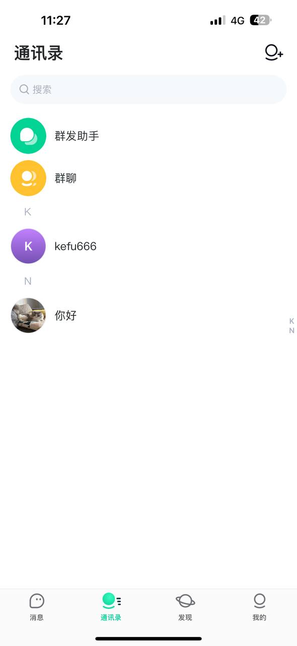通讯录:添加好友,新建群组,成员标签,创建团队等功能。