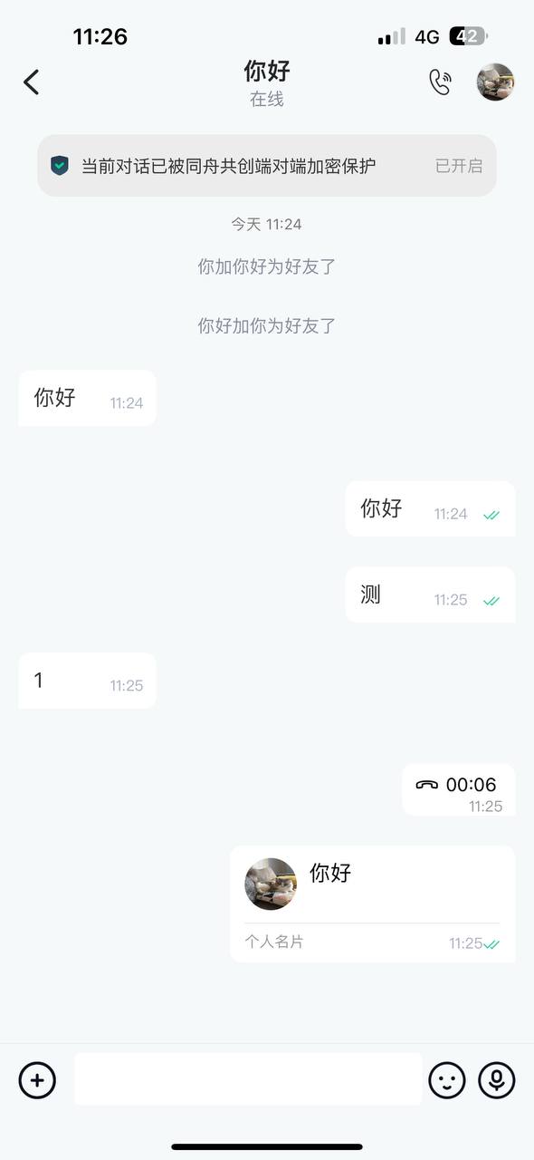单聊:文字,语音,音视频通话,表情,图片,文件,红包,转账,名片,阅后即焚,双向撤回,清空双方聊天记录等功能。
