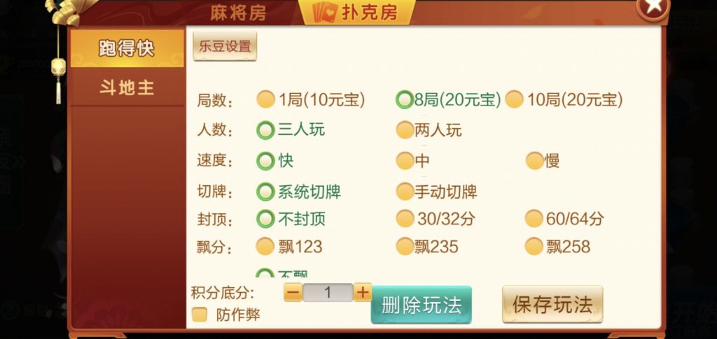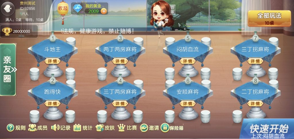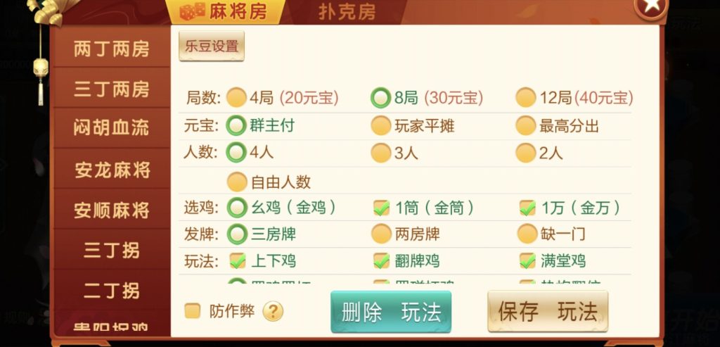 麻将:三丁两房,两丁两房,闷胡血流,安龙麻将,安顺麻将,三丁拐,两丁拐,贵阳捉鸡,榕江麻将扑克:跑得快,斗地主