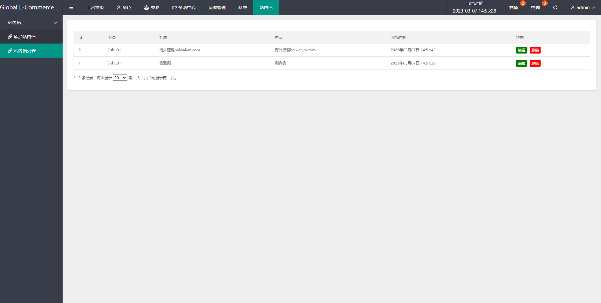 IP注册限制、系统时区配置、站内消息公告群发等组多功能