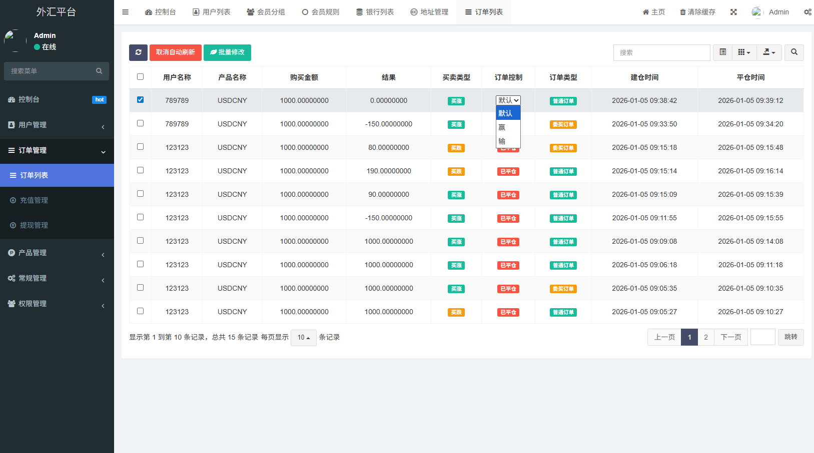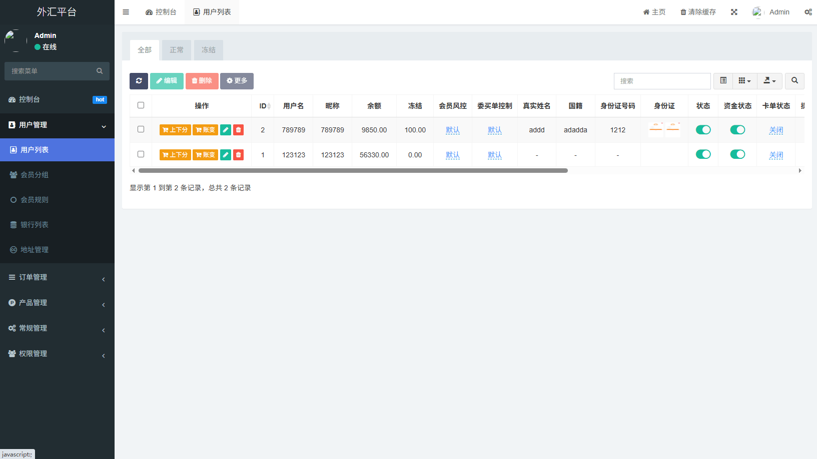 系统支持订单委买,单控群控,实名认证,提现限制等功能