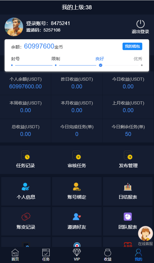 前台:首页可领取脸书tiktok等点赞关注任务!任务等级分为七种,每种等级领取的任务数量各不同。