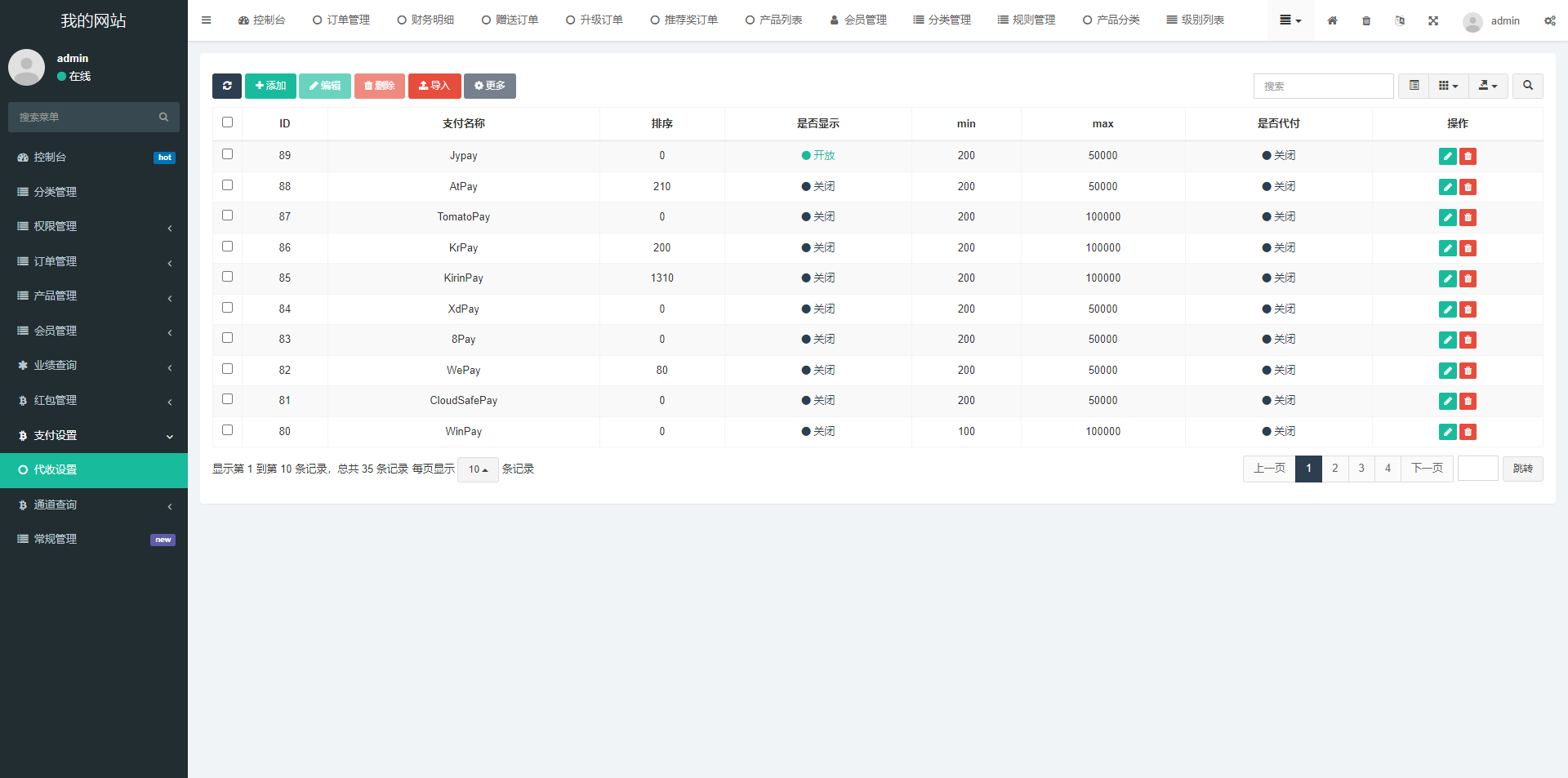 支付默认对接第三方,需要自行对接支付