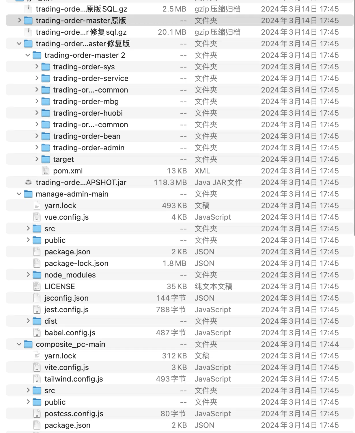 接口是java spingboot pc前台,后台, h5 三个都是vue的代码