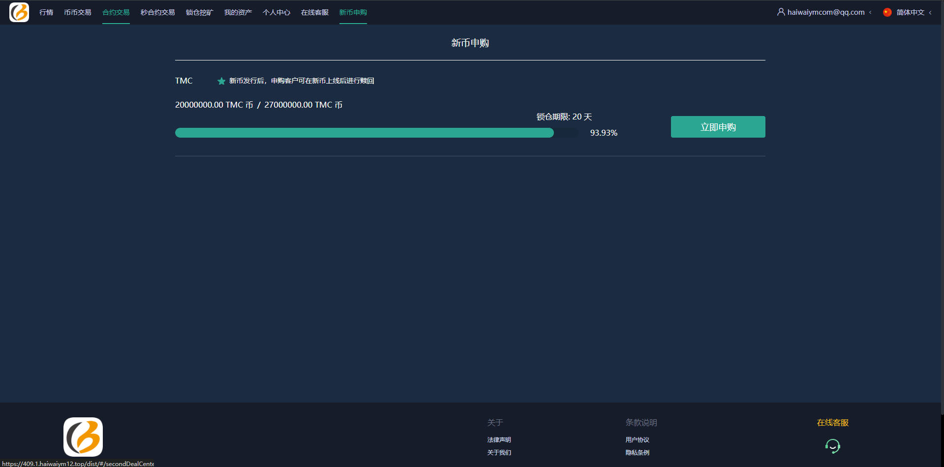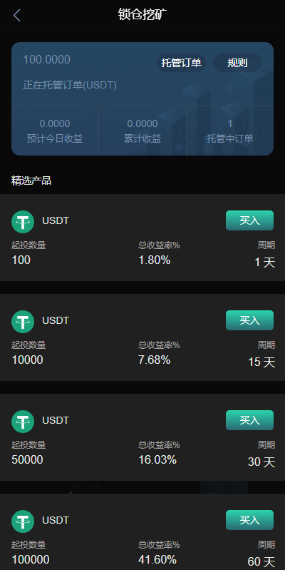 系统功能支持:秒合约、合约、锁仓挖矿、新币认购功能,无平台币