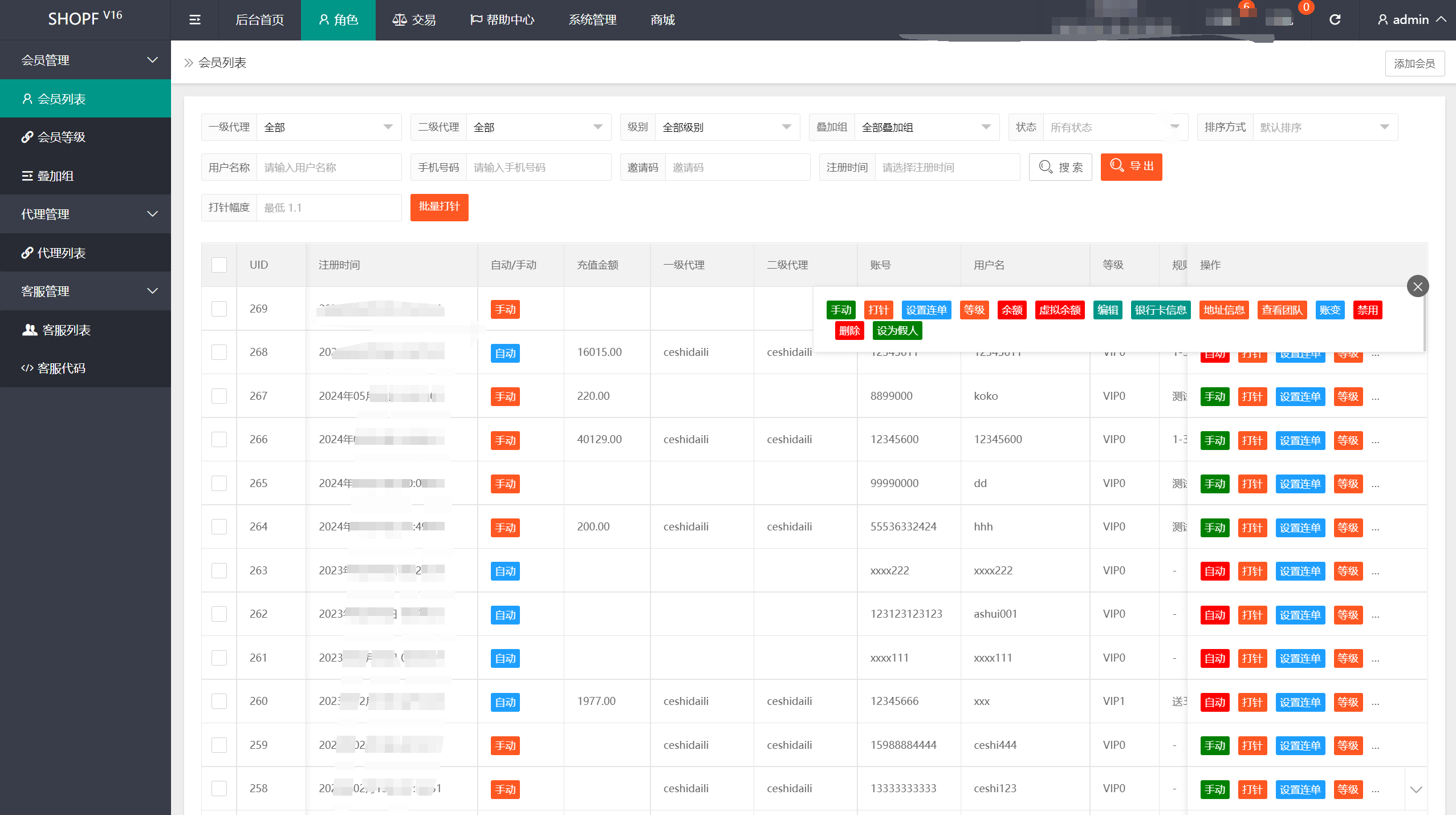 7.会员列表新增总充值