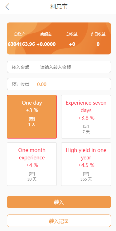 余额宝分为定数时间,一天,七天,一个月,一年,就会产生收益