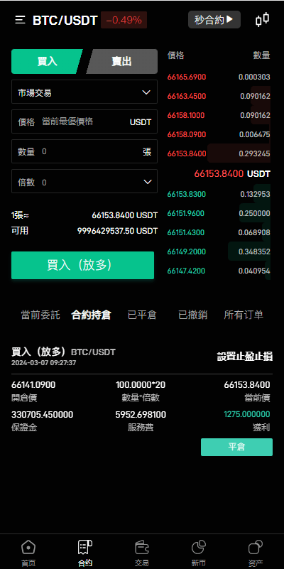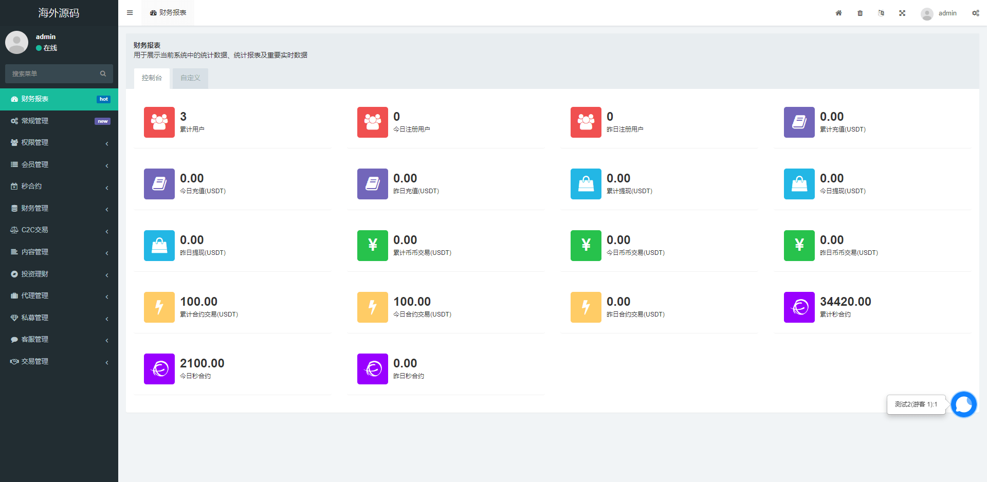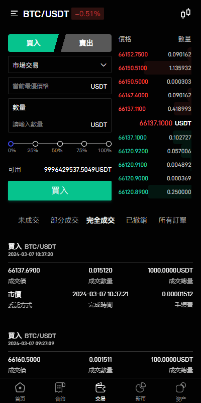 系统功能很全了,ui也不错功能支持:币币交易、合约交易、秒合约交易、c2c、认购、理财等
