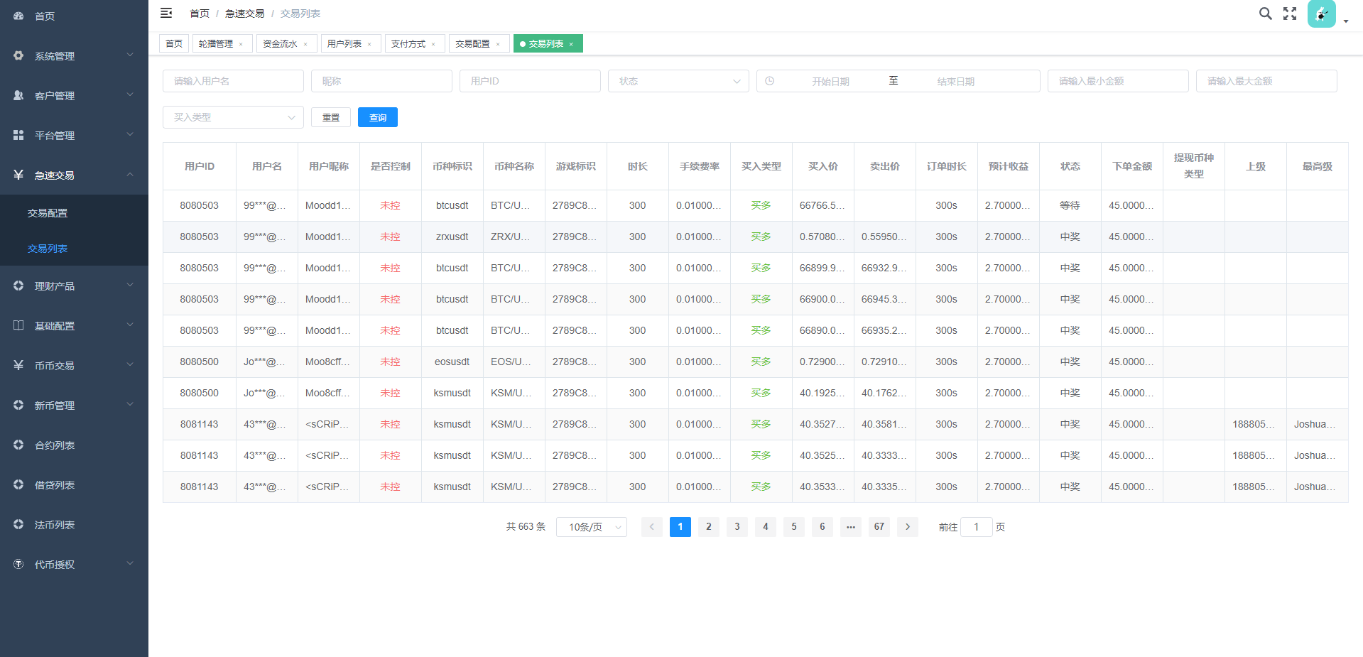 多语言微盘系统/虚拟币微交易/时间盘/秒合约