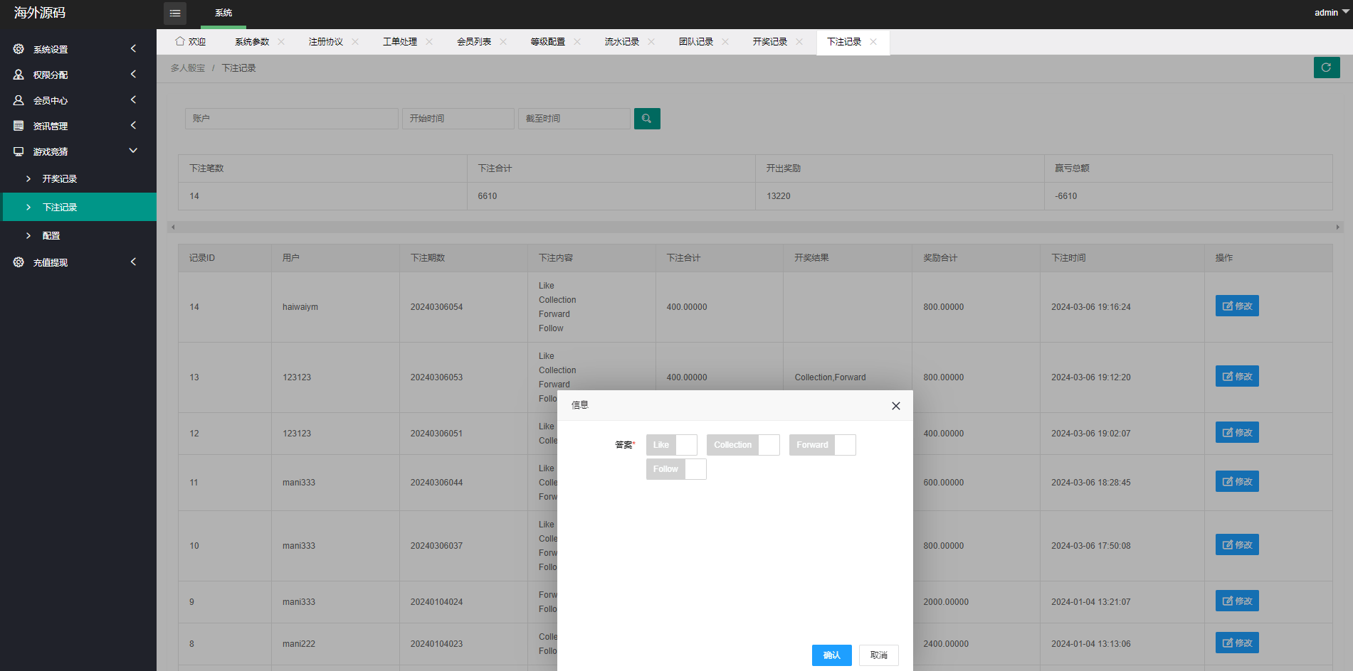 多语言伪酒店系统/海外酒店下注/竞猜下注/开奖预设