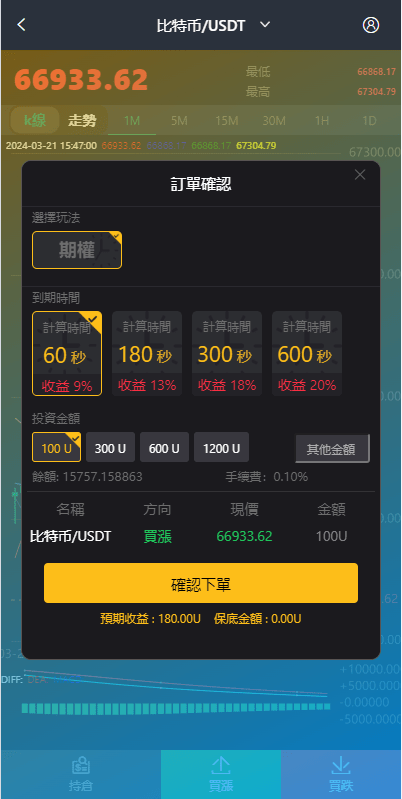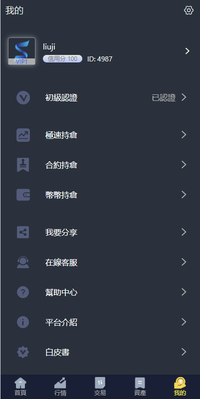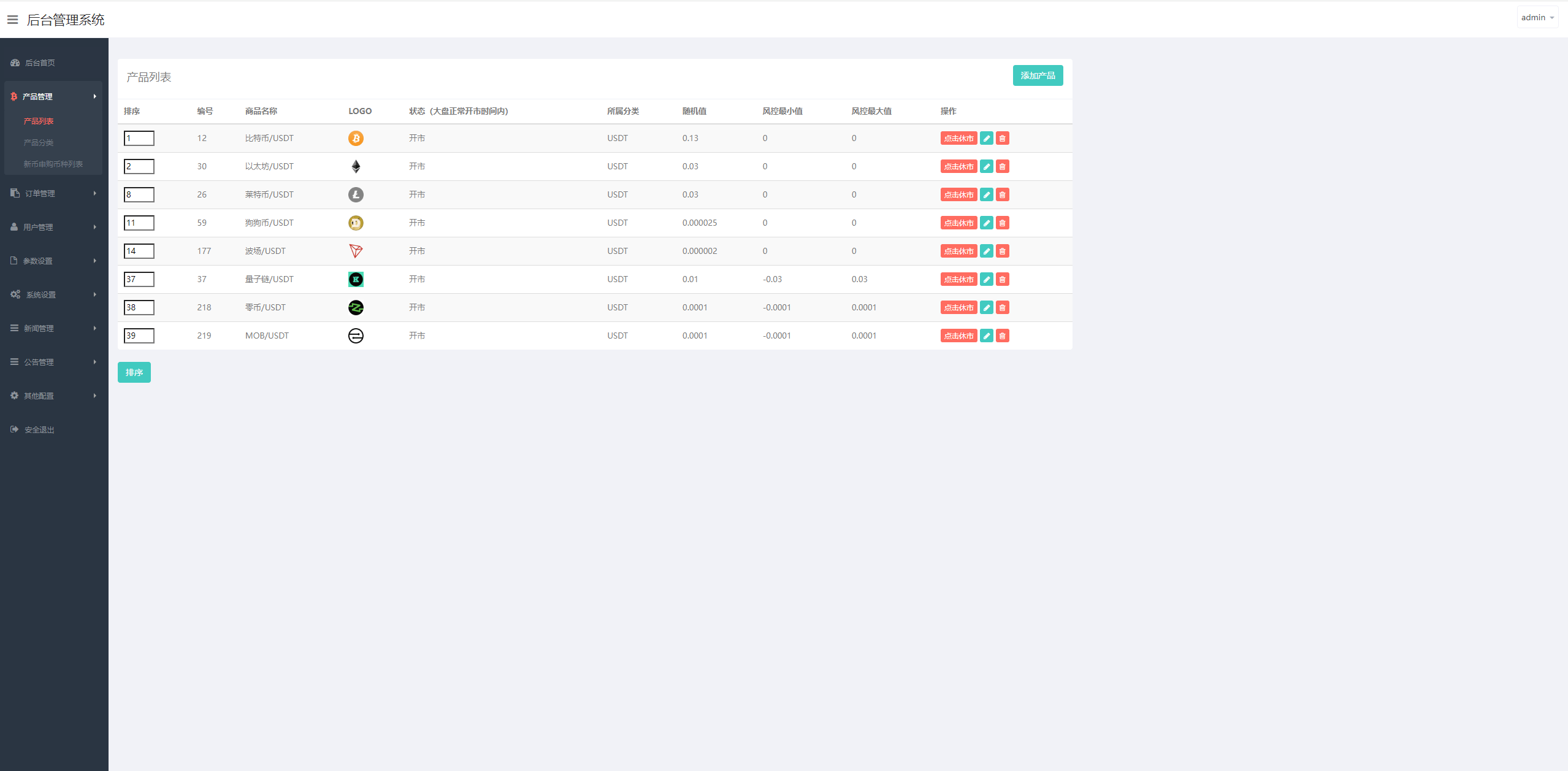 系统支持币币交易、合约交易、期权交易、投资理财、在线客服、新币申购等功能