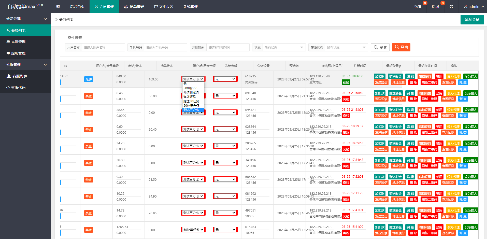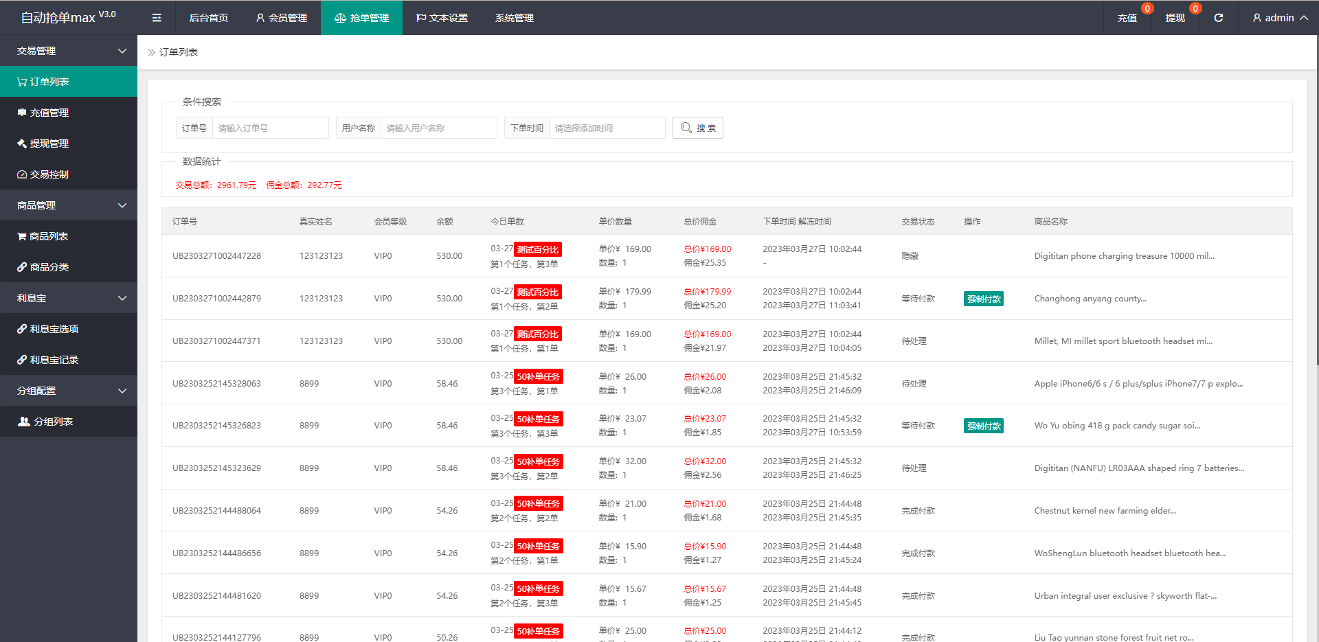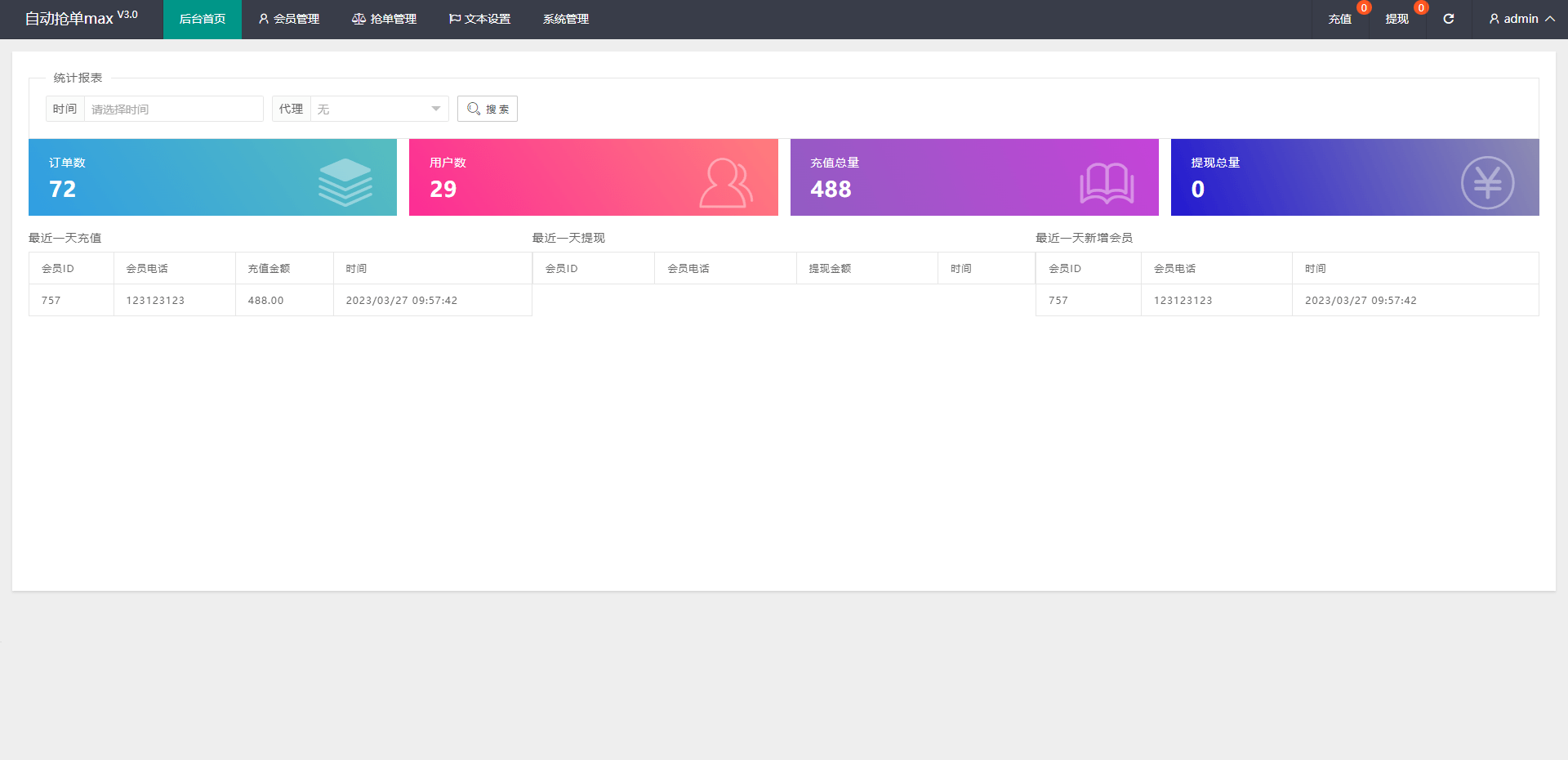 赏邦精美UI/抢单刷单系统/会员跟踪/打针/三级分销/后台功能丰富