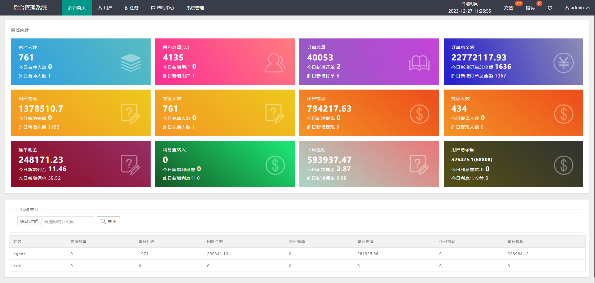 赏邦精美UI/抢单刷单系统/会员跟踪/打针/三级分销/后台功能丰富