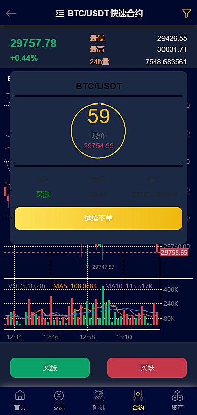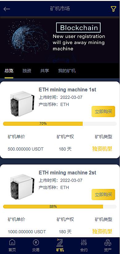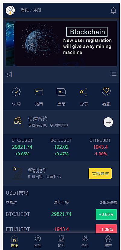 二开黑色UI合约币币矿机轻量交易所