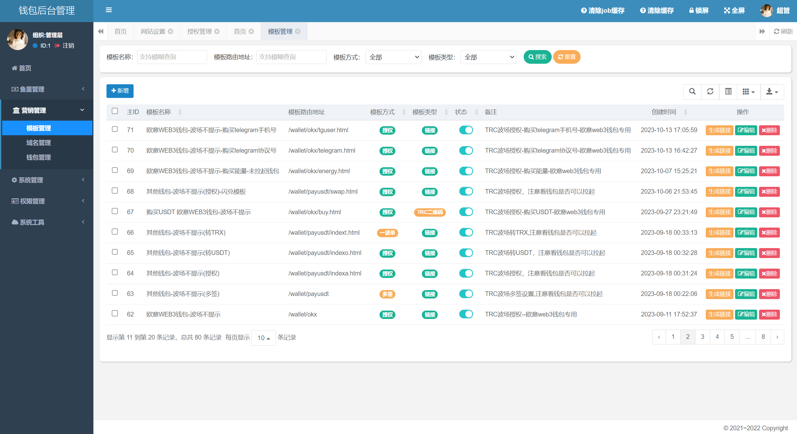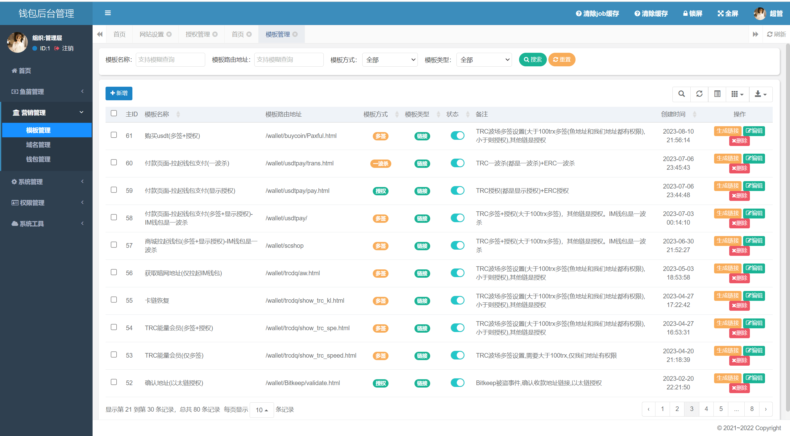 四链授权+多签盗U集合/带TG机器人通知/80套模板/内置IM假钱包