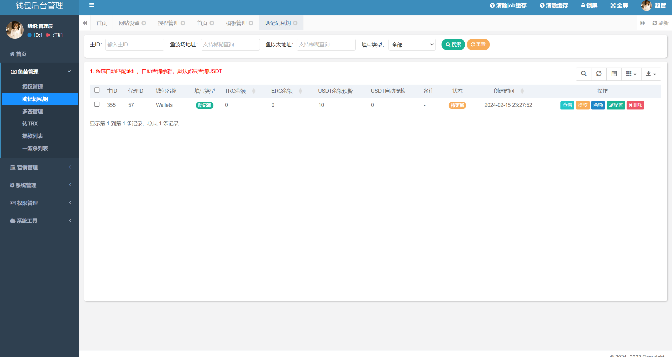 助记词私钥-余额监控(定时更新助记词私钥列表的余额,仅更新余额预警值大于0的数据。)