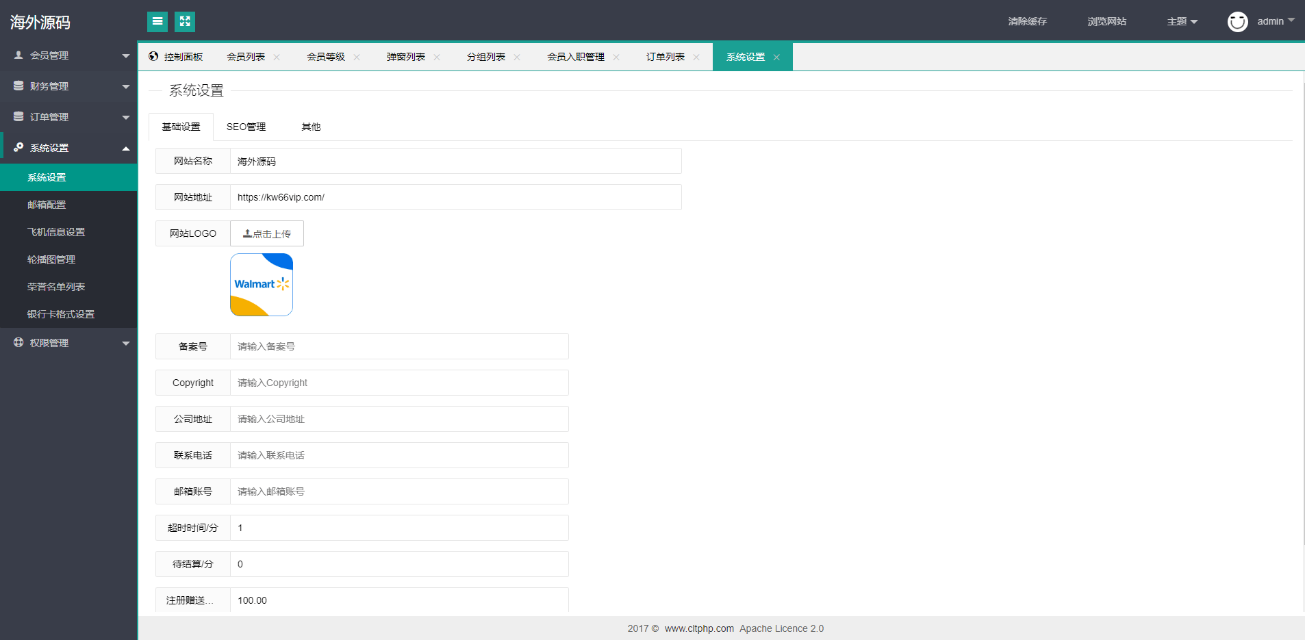 系统前端多语言自带多个语言包可以自行添加,后台支持设置默认语言和关闭前端语言选择开关