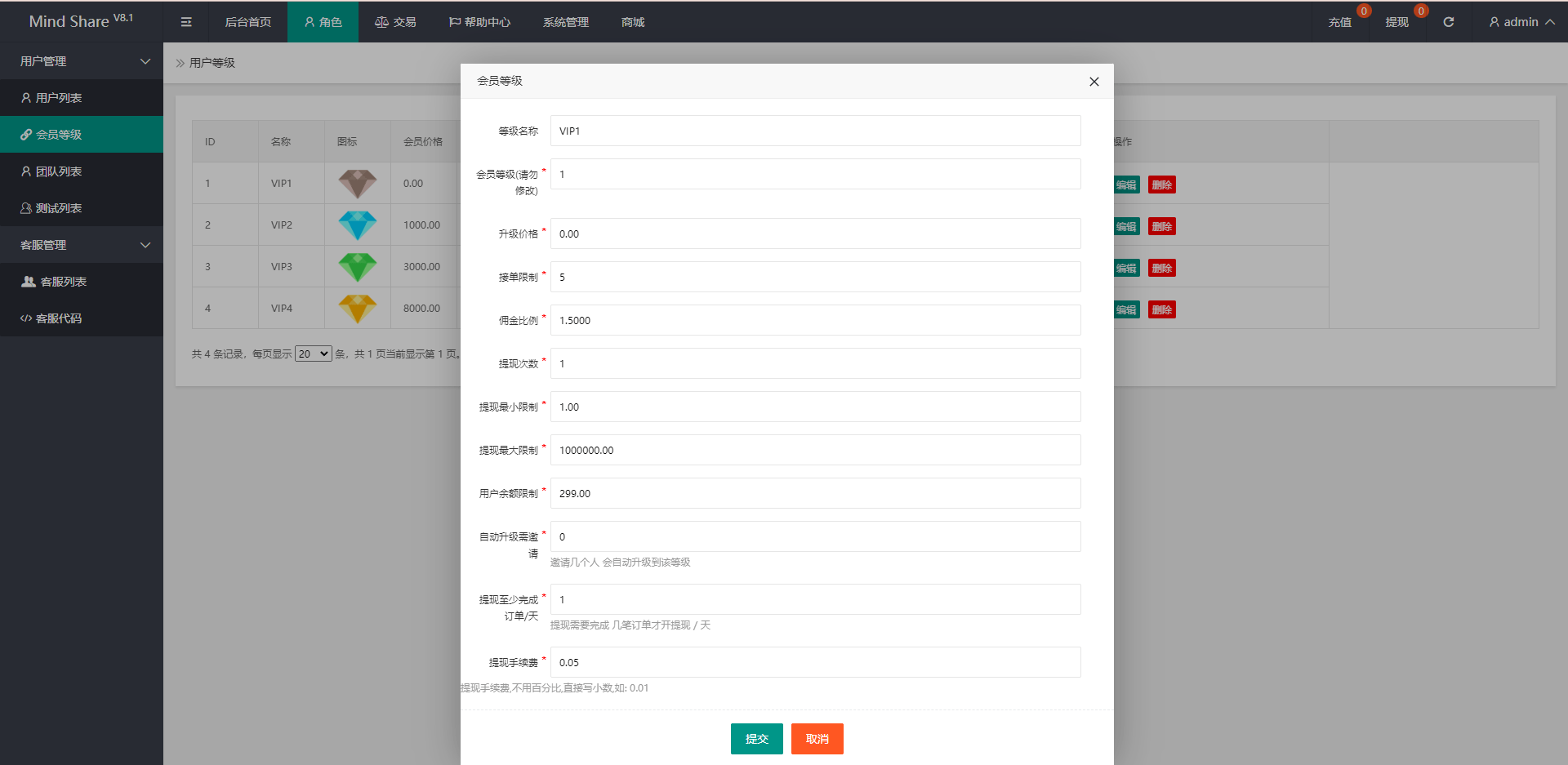 经典版的抢单刷单系统,后台单纯的会员等级抢单控制