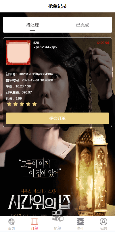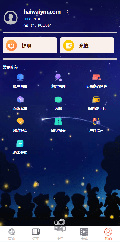海外多语言电影抢单刷单系统/卡单/业务员/代理/前端uinapp