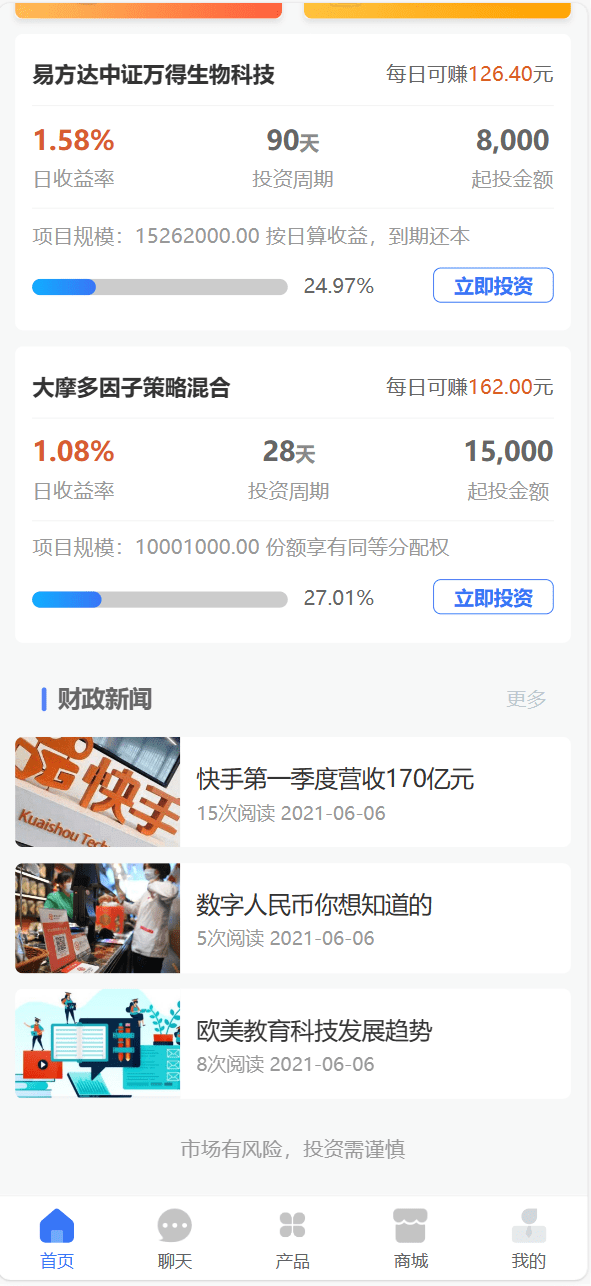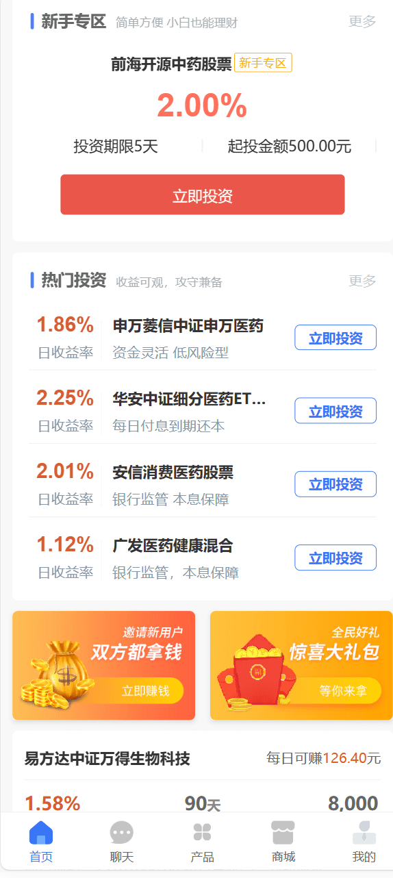 投资 债券及货币理财大师二开ui源码