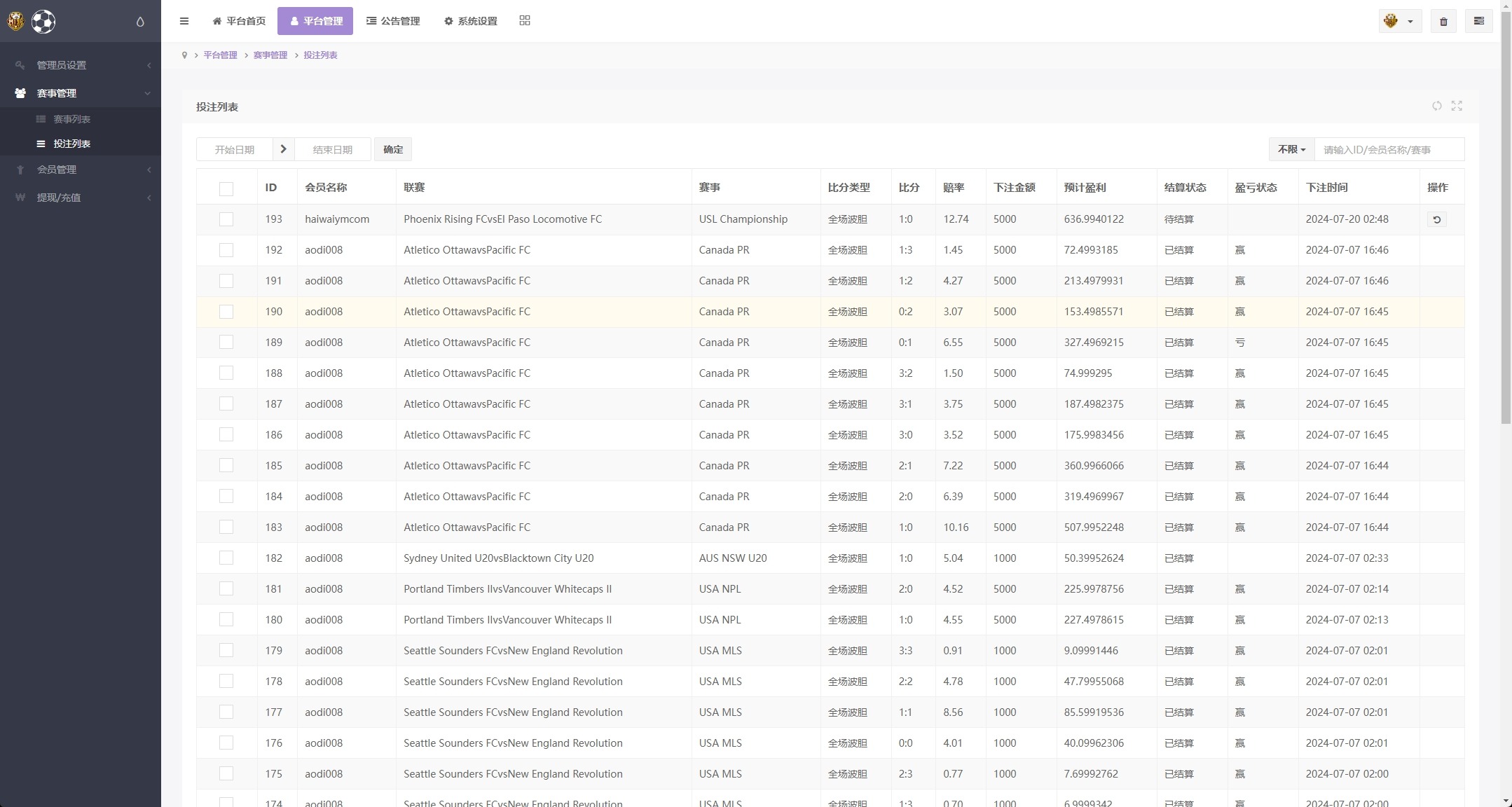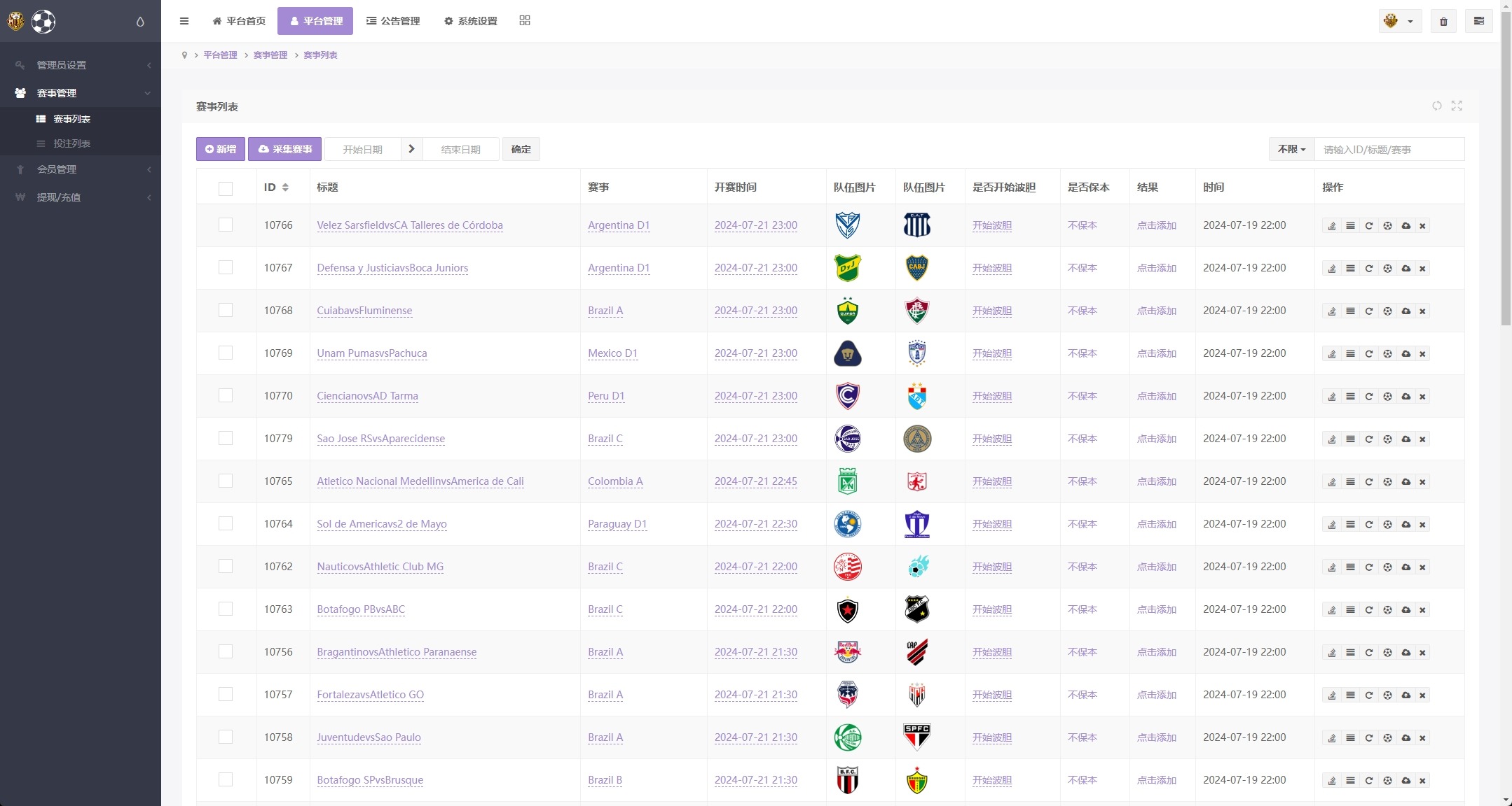 系统赛事数据自动采集,自动结算