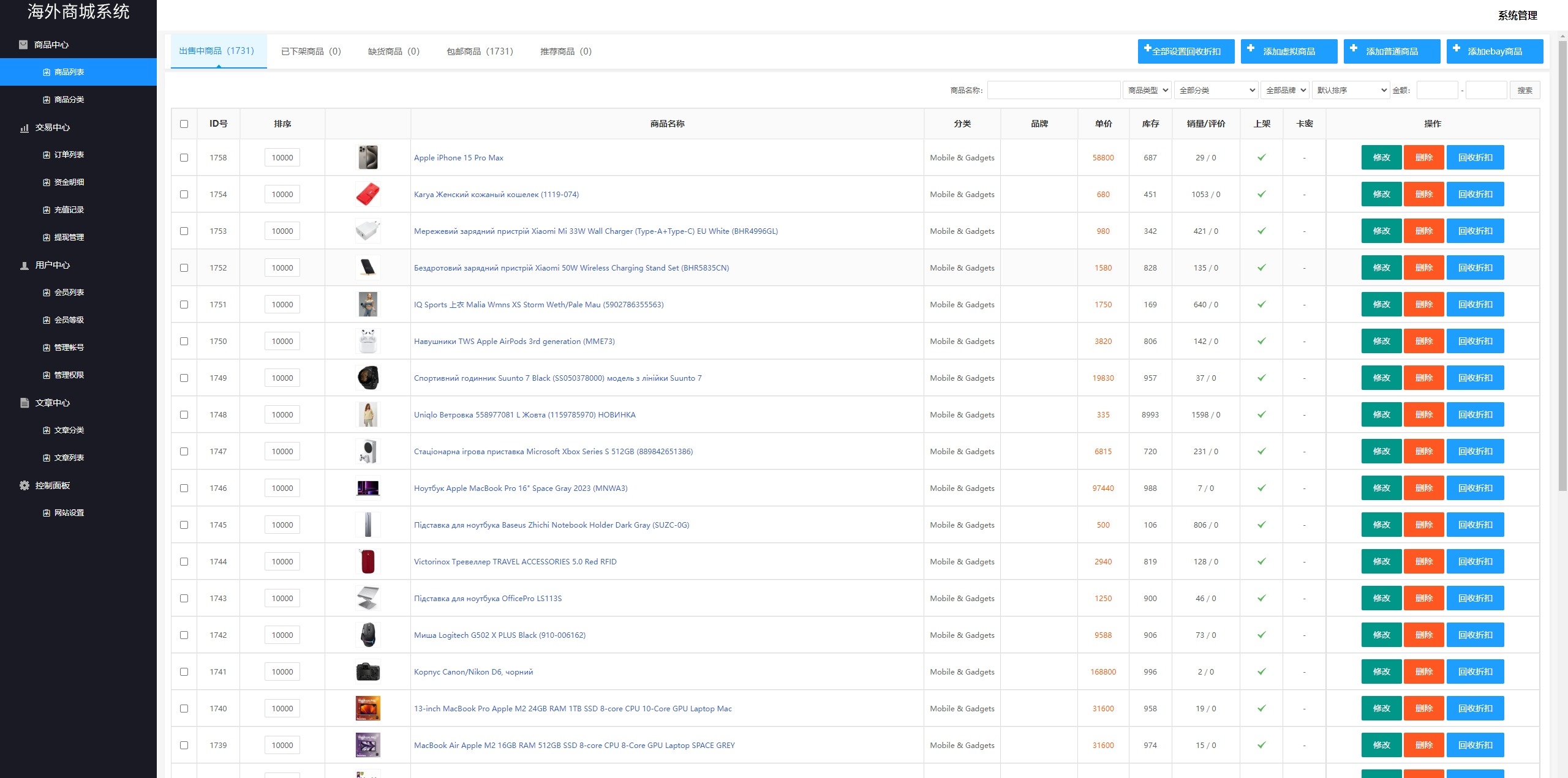 优化版海外商城系统/多语言跨境电商源码/一键铺货
