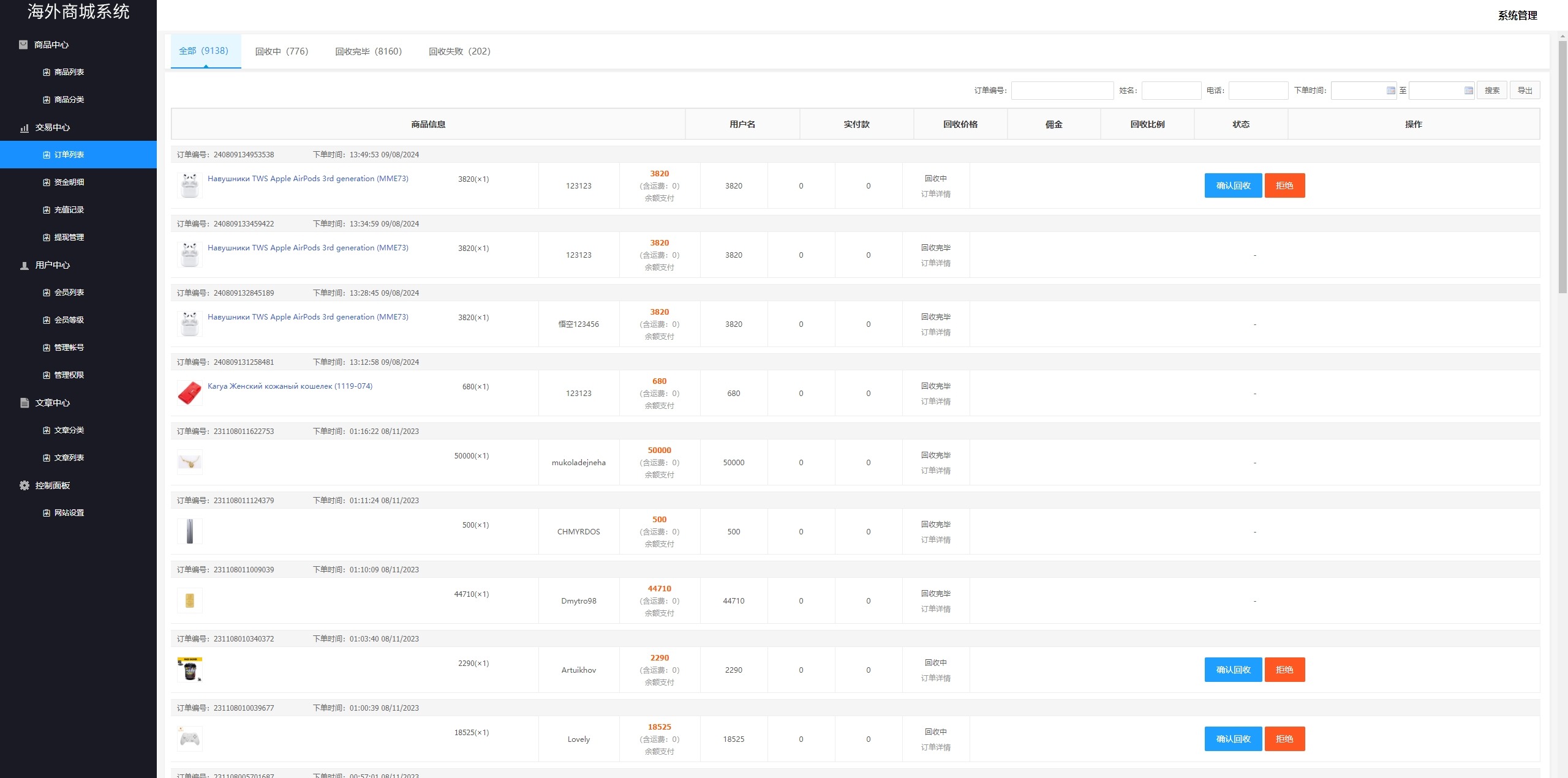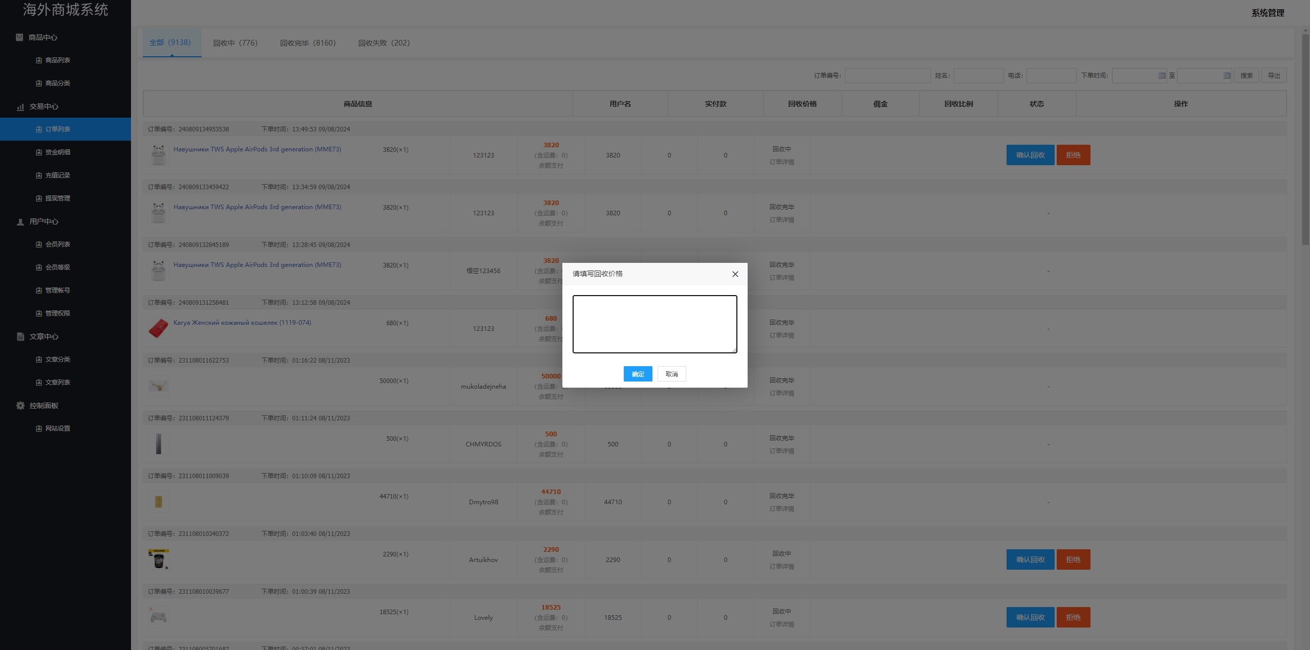 多语言商城回收系统/订单自定义价格回收/海外商城订单回收