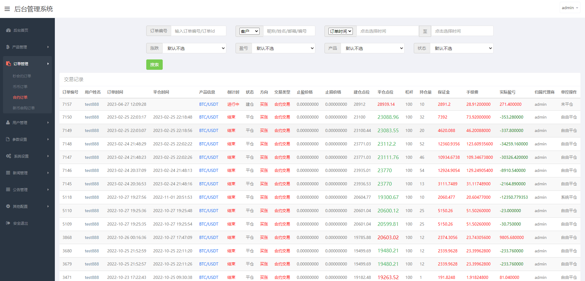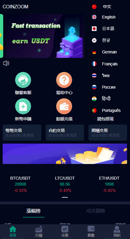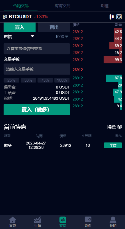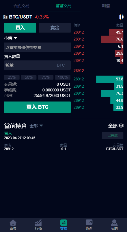 系统支持币币交易、合约交易、期权交易、新币申购等功能