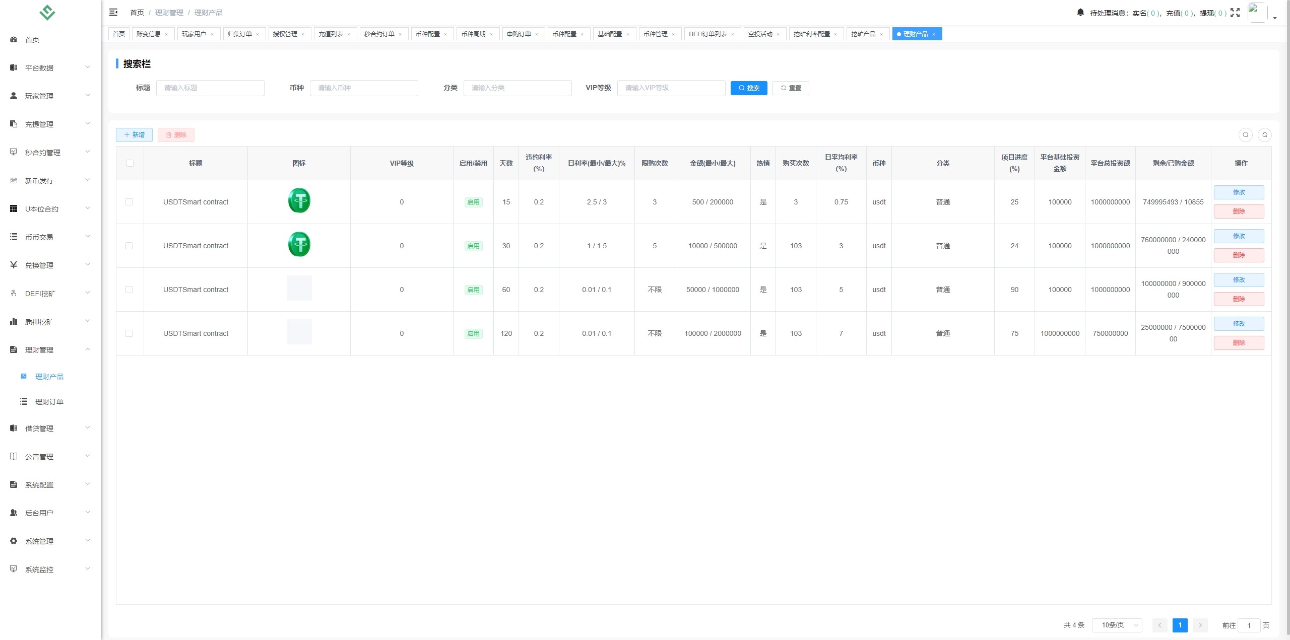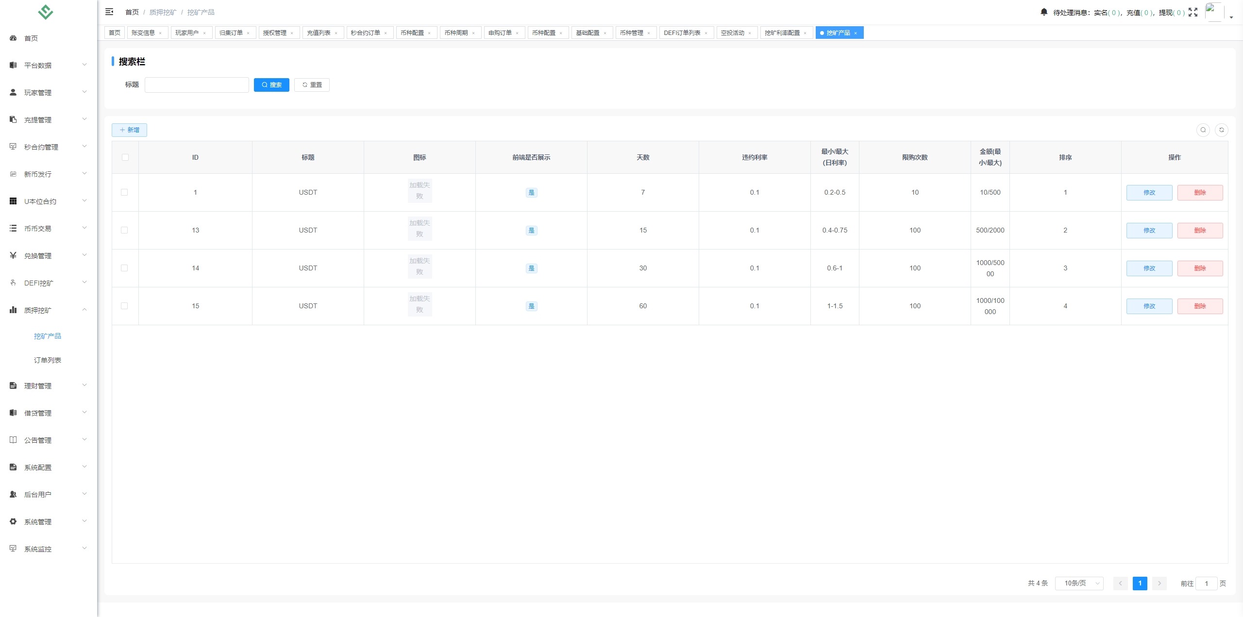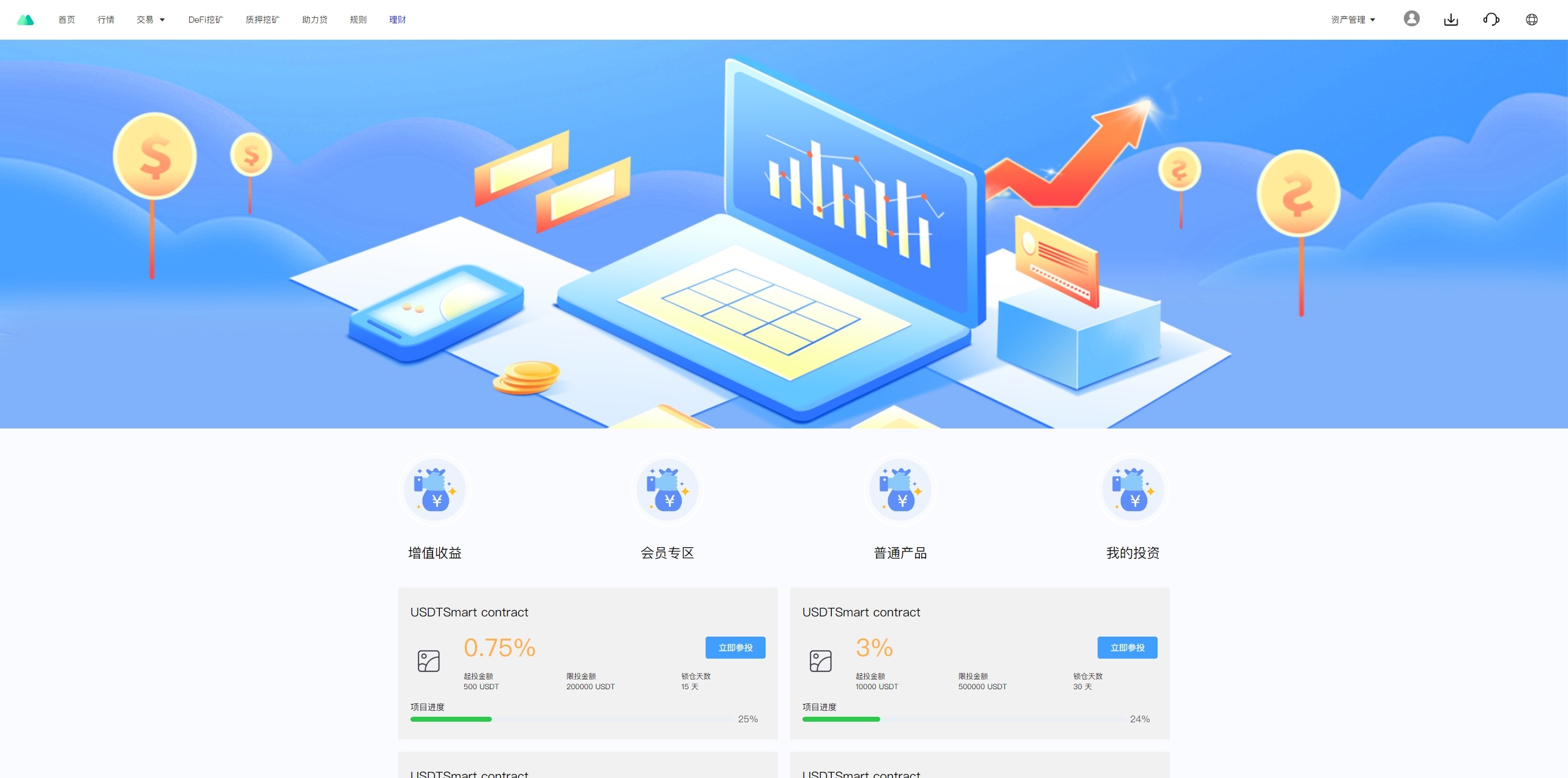 币币、U本位合约、秒合约、质押挖矿、助力贷、理财、代理、Ai智能控盘、推广三级分销等功能