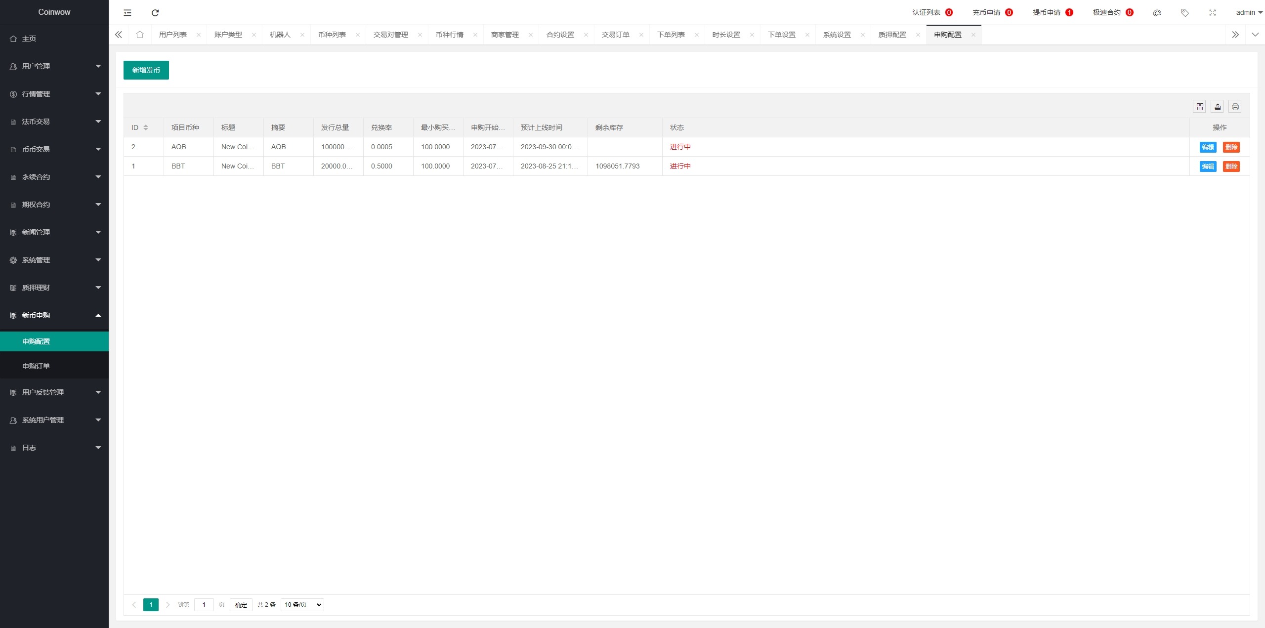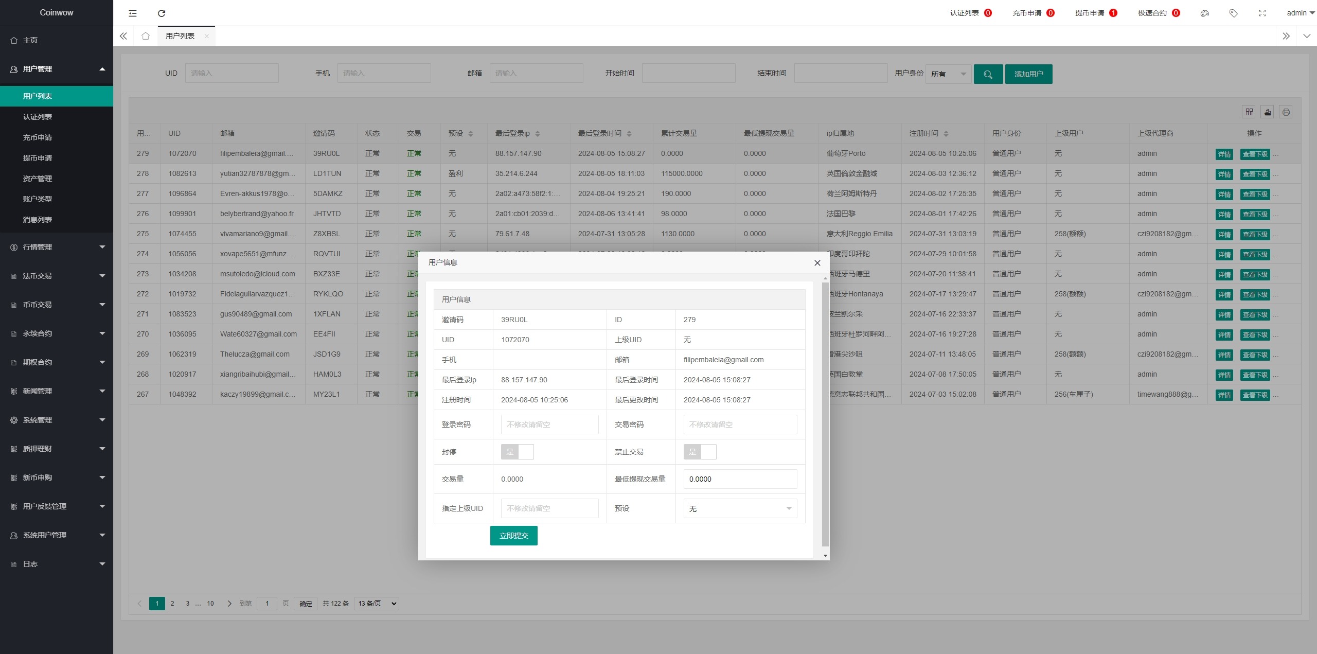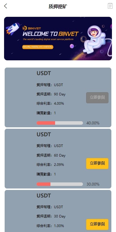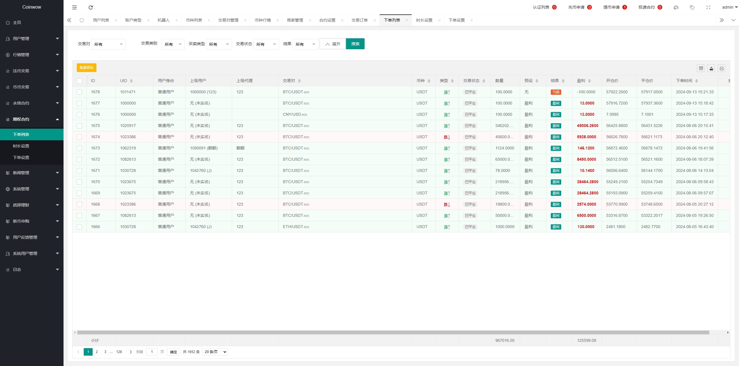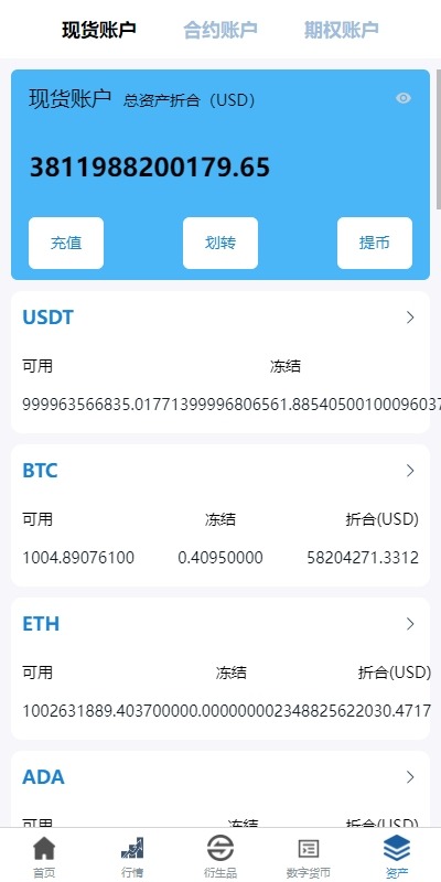 系统功能:平台币、期权交易、合约交易、质押挖矿、认购等功能