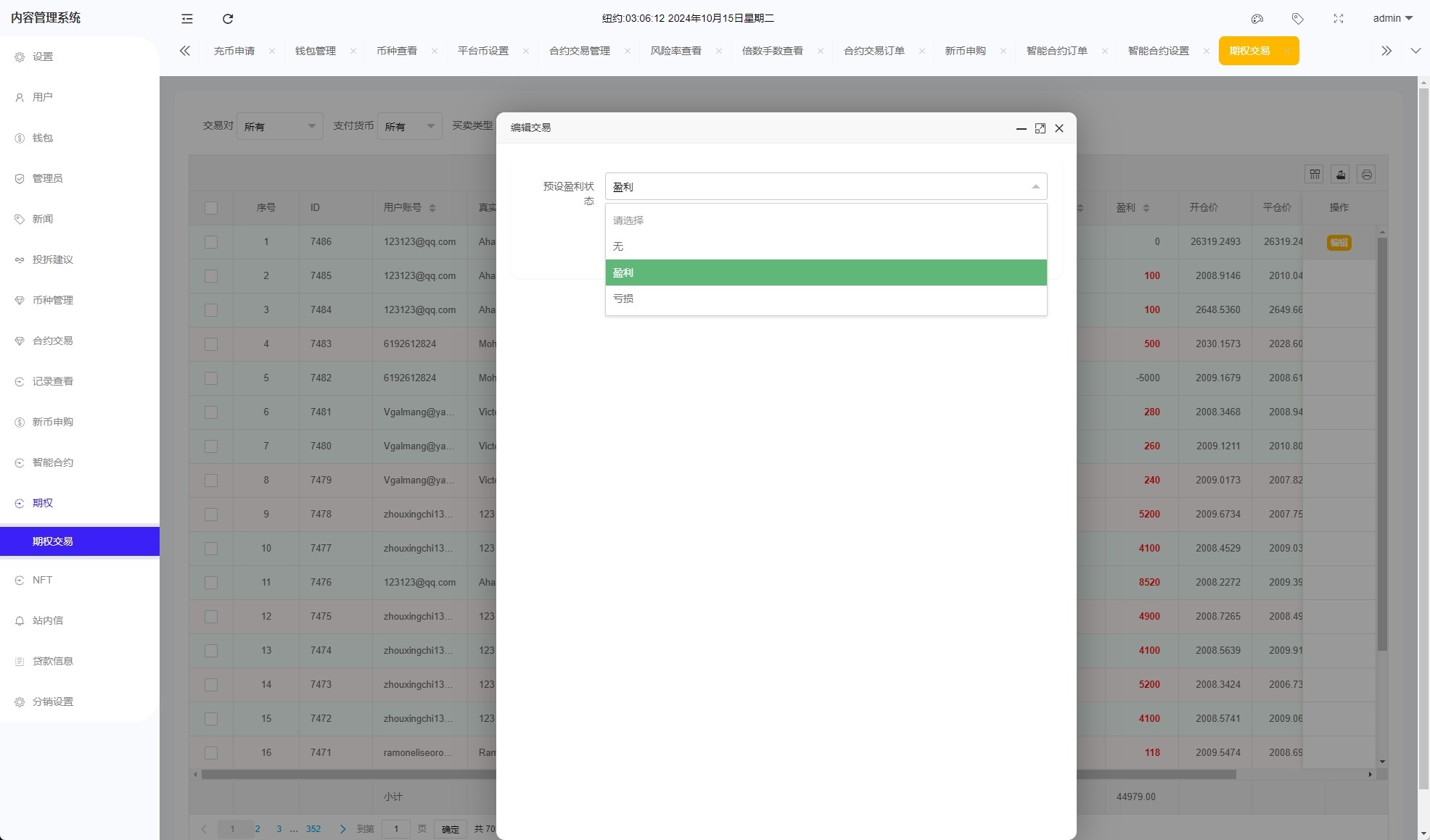期权交易(俗称秒合约-盈亏控制-单控-群控)