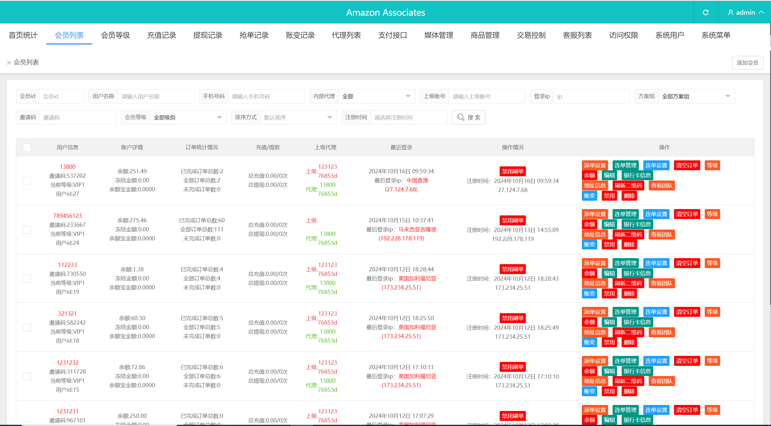 3、清空所有订单,比如我会员等级设置完成20个订单就可以提现,但是我手动清空重置订单,这个账号还需要完成我会员等级设置的20个订单才能再次提现,目前会员等级里面设置的是按每天完成多少个订单就可以提现。