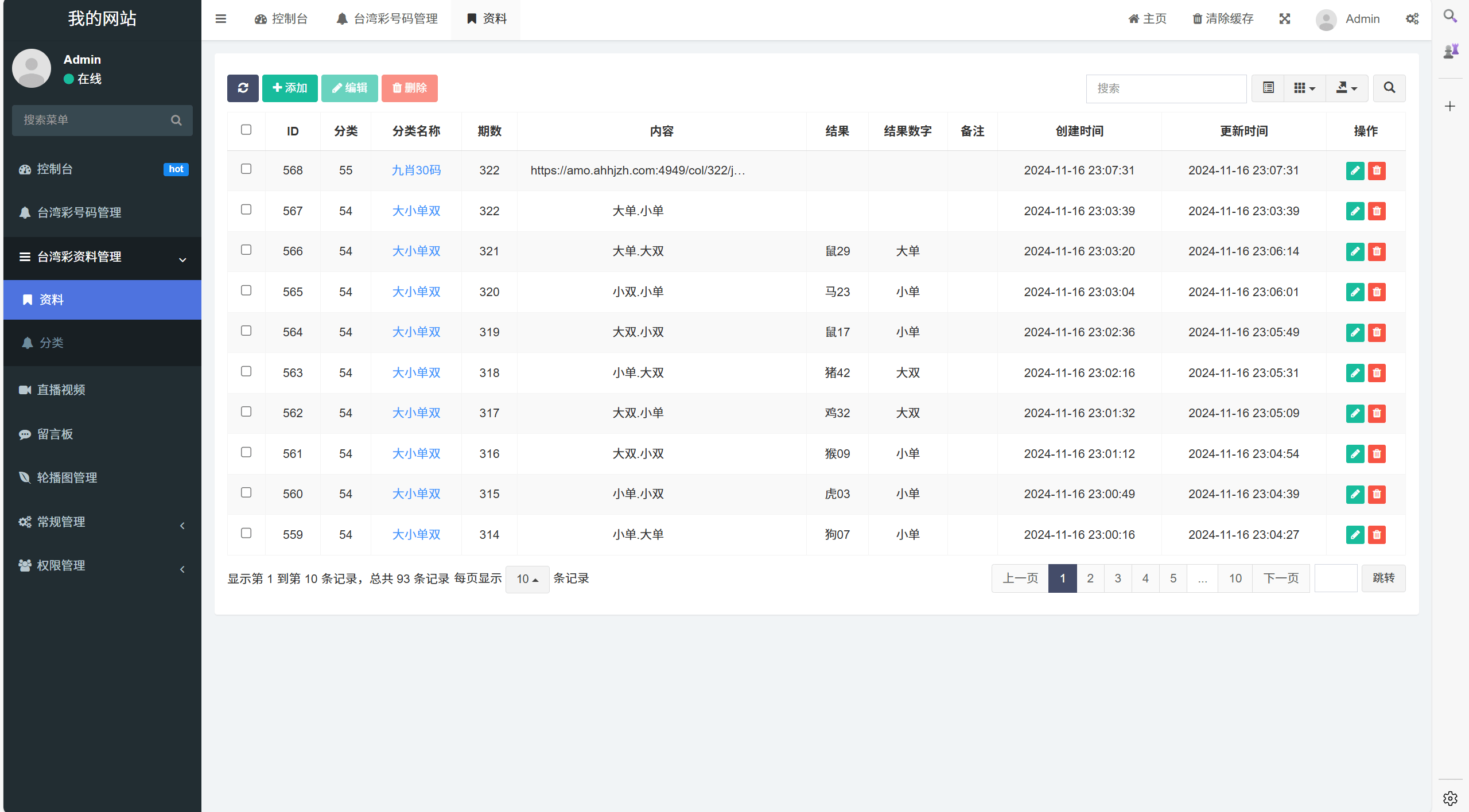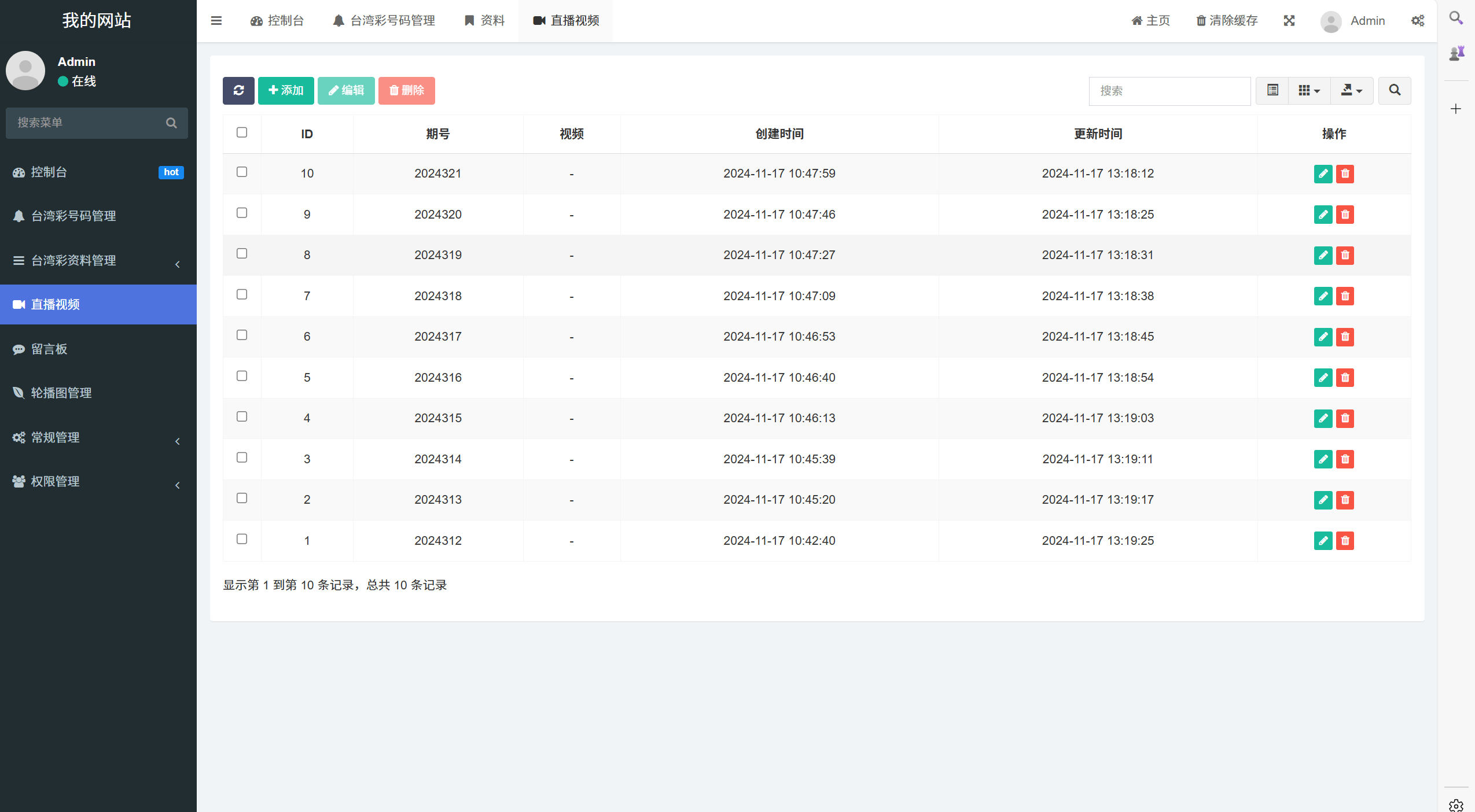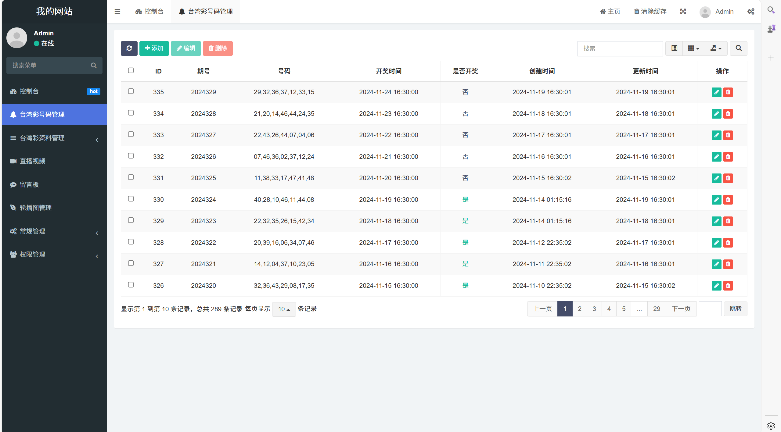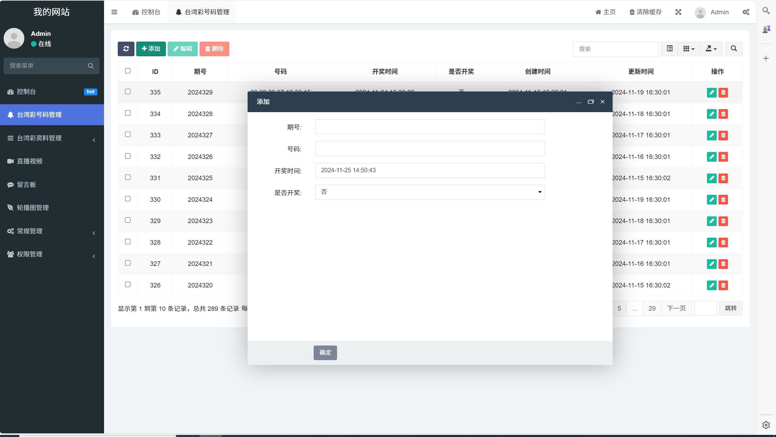 港彩和奥彩为官方彩,新港彩和台湾彩为私彩,后台fastadmin框架开发