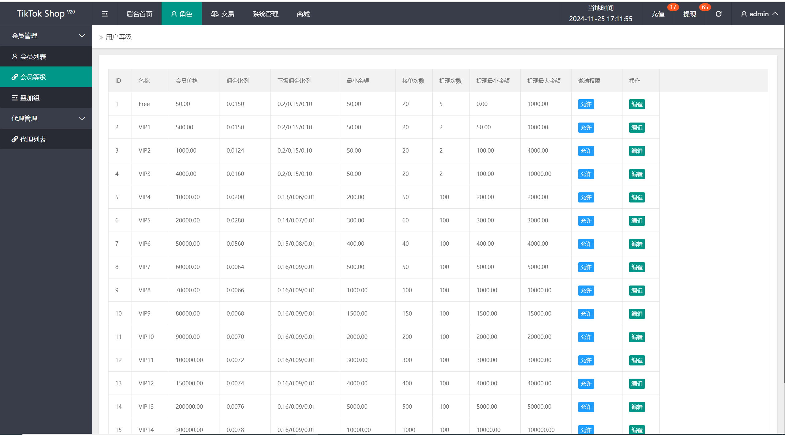 3、清空所有订单,比如我会员等级设置完成20个订单就可以提现,但是我手动清空重置订单,这个账号还需要完成我会员等级设置的20个订单才能再次提现,目前会员等级里面设置的是按每天完成多少个订单就可以提现。