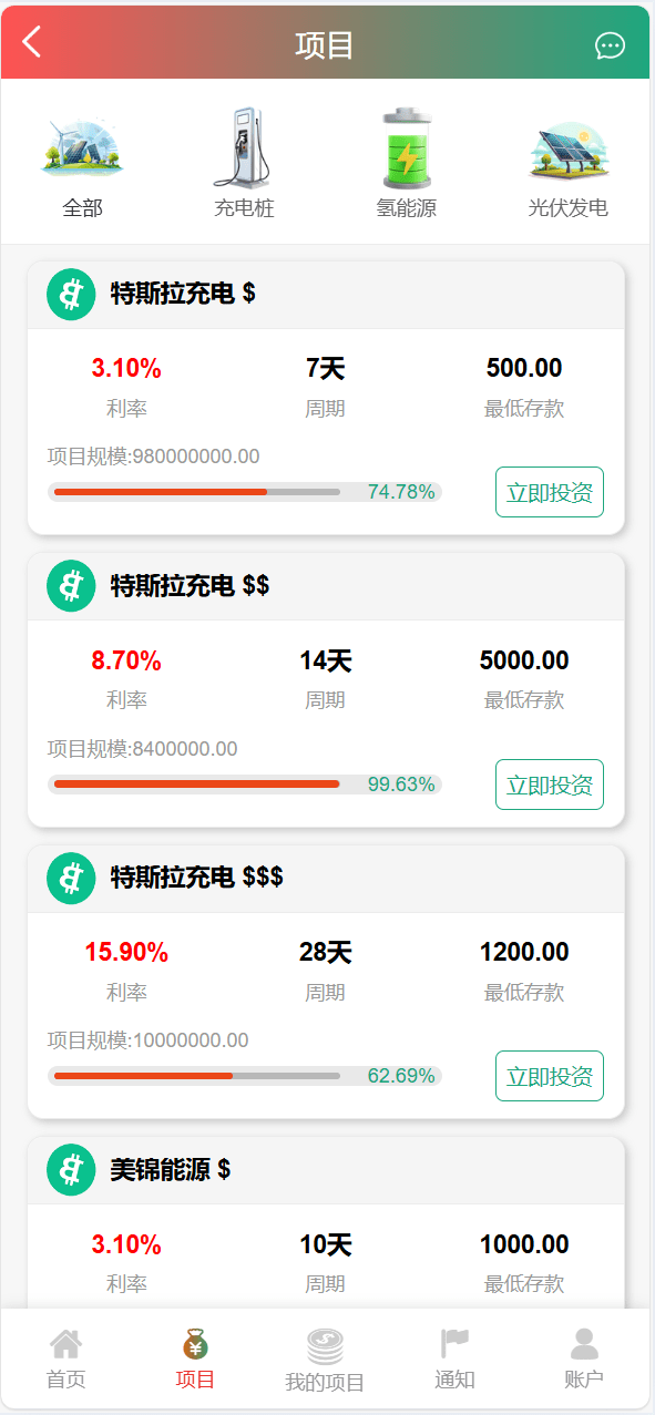 独家开发-新能源理财系统,充电桩/氢能源/光伏电站