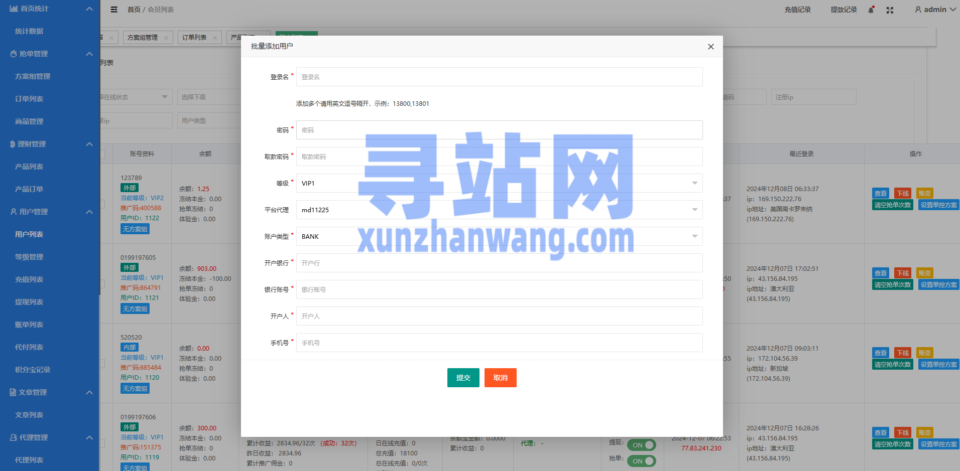 系统后端功能全新定制,后端新增多个功能