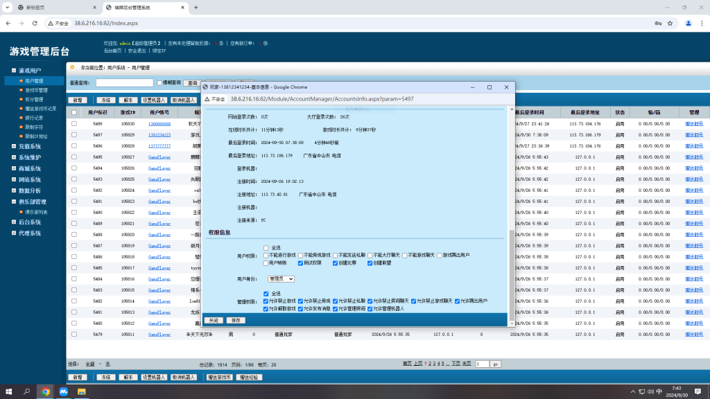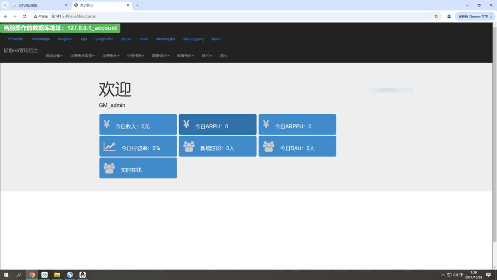 版本功能:总管理后台可以针对每个渠道进行管理,网站源码中kufu是给渠道商的管理系统,控制系统分为全局参数控制、及账号点杀点送。