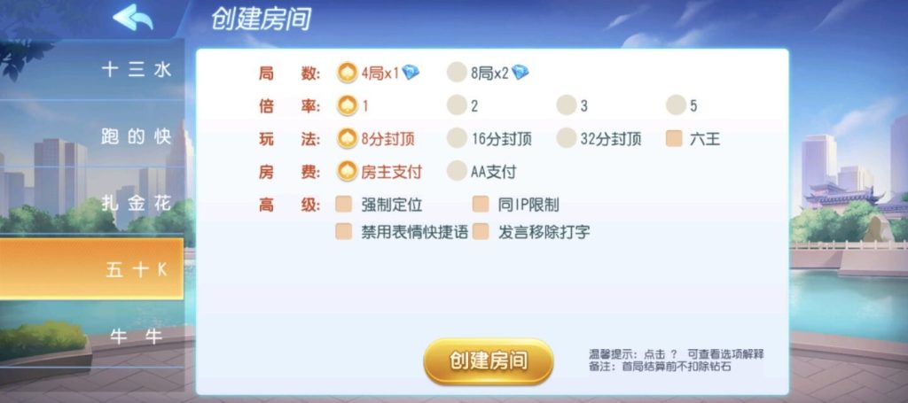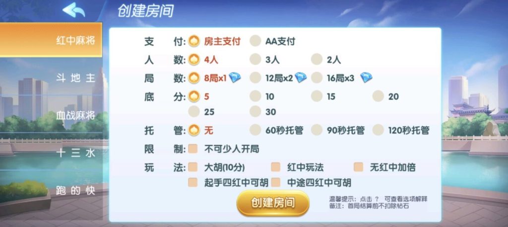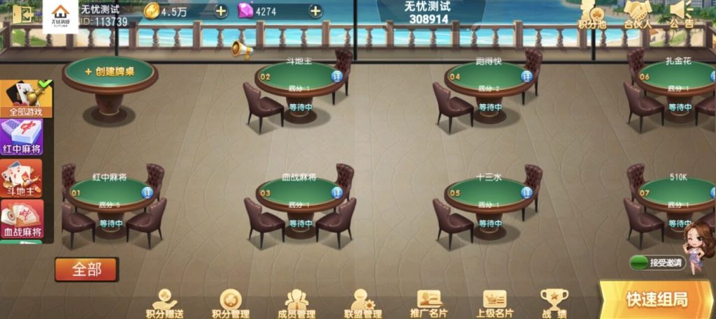 内含游戏:红中麻将,斗地主,血战麻将,十三水,跑得快,扎金花,五十K,牛牛