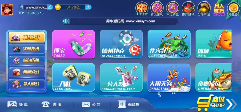 此套系统是网狐荣耀版本二开的平台新,平台内置的超多子游戏很精美,代理控制系统完善,大有反s系统很很多活动及视讯接口等等,这套皮用到很多平台。