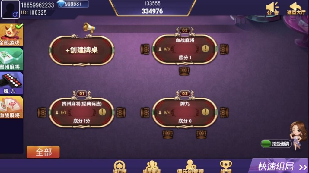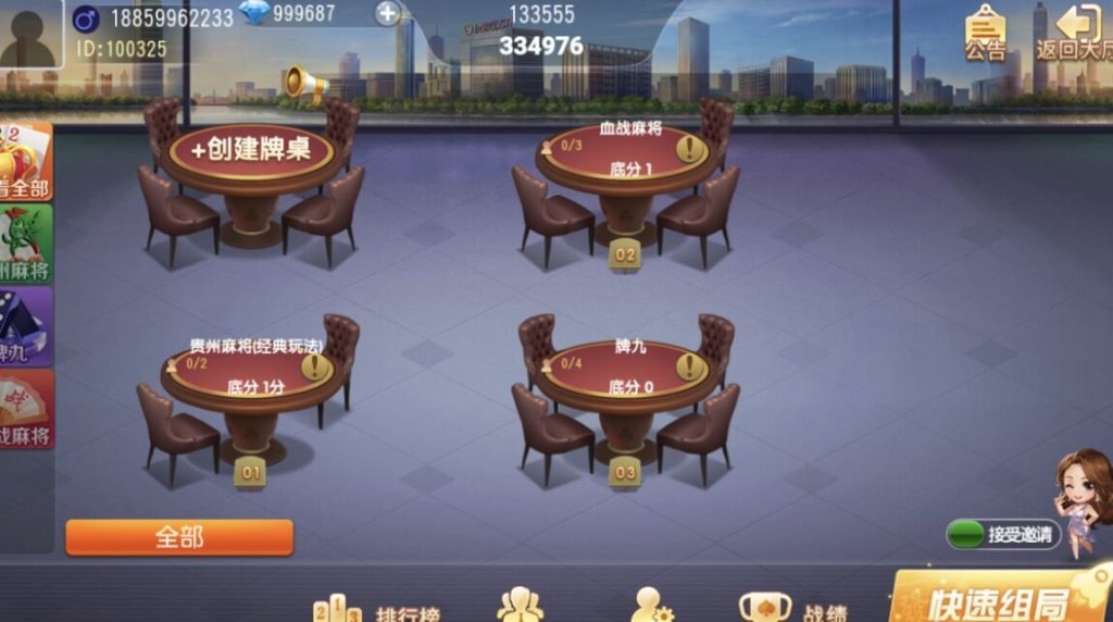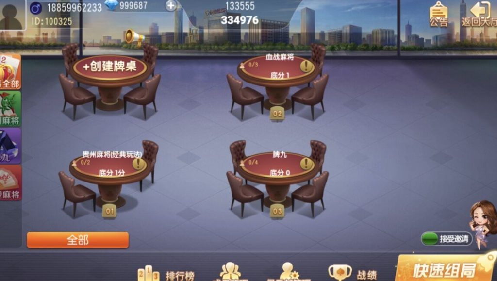 内含游戏:红中麻将、划水麻将、扣点点麻将、血战麻将、普定麻将、贵州麻将、牛牛、斗地主、三公、金花、跑得快、斗红牛、五十K、填大坑、牌九、跑胡子