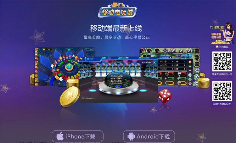 手机移动电玩城是移动互联网推出的一款游戏产品,在移动手机、平板上玩电玩街机模拟游戏的网络手游。有单独的服务器和管理后代,支持安卓、苹果、电脑设备同时在线,刻用点卡、支付宝、网银等方式充值,扫描二维码既可以安装APP,以互联网为依托运营,后台有强大的管理系统,可以让玩家不论在世界的每个角落都可以尽情畅享游戏的乐趣。 移动电玩城是根据当前市场环境并应广大运营需求推出的一种新产品、新模式,其核心是把线下实体电玩城经营模式转变成线上(玩家手机、平板)经营,从而使得电玩城可以线下线上结合同时运营,有效地规避了市场上存在的各种风险。 一套移动电玩城可以经营多个场所,账目独立管理,管理系统多权限分级管理,功能齐全,账目管理清晰。后台可以查看玩家状态,并进行运营数据分析,有利经营者进行科学管理。 移动电玩城,开在手机里的电玩城,完美兼容PC、安卓、苹果设备,科技创新颠覆电玩传统经营模式,不受场地、政策影响,投资小盈利快。六狮 单挑前端控制,捕鱼手机端控制,win系统。不会搭建找站长搭建