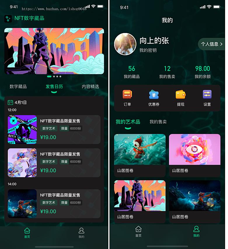 NFT数字艺术数字藏品小程序APP源码元宇宙区块链赚钱nft,编译后的前端。