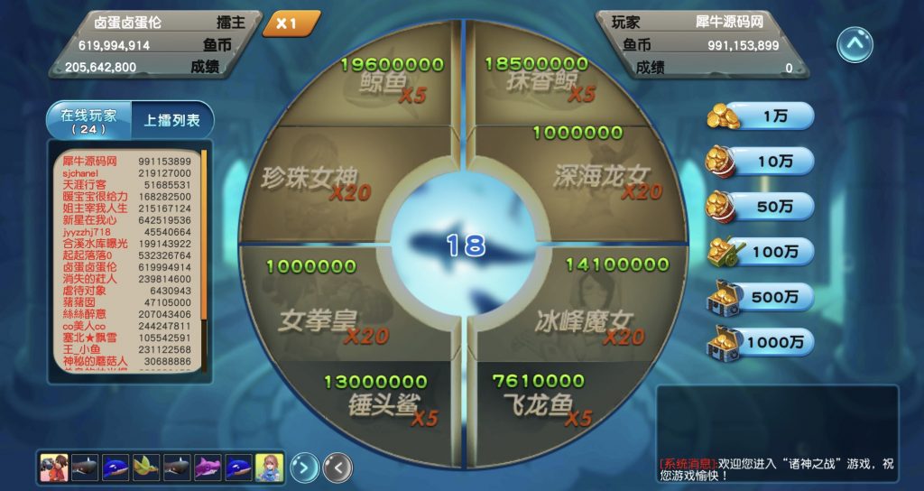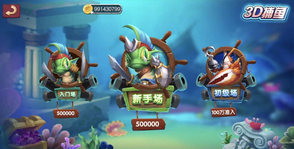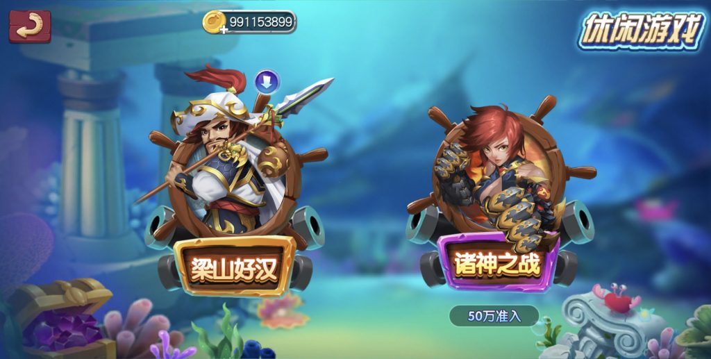 子游戏分别:3D捕鱼 李逵捕鱼 梁山好汉 诸神之战 ,带打boss专场玩法(比较少见)