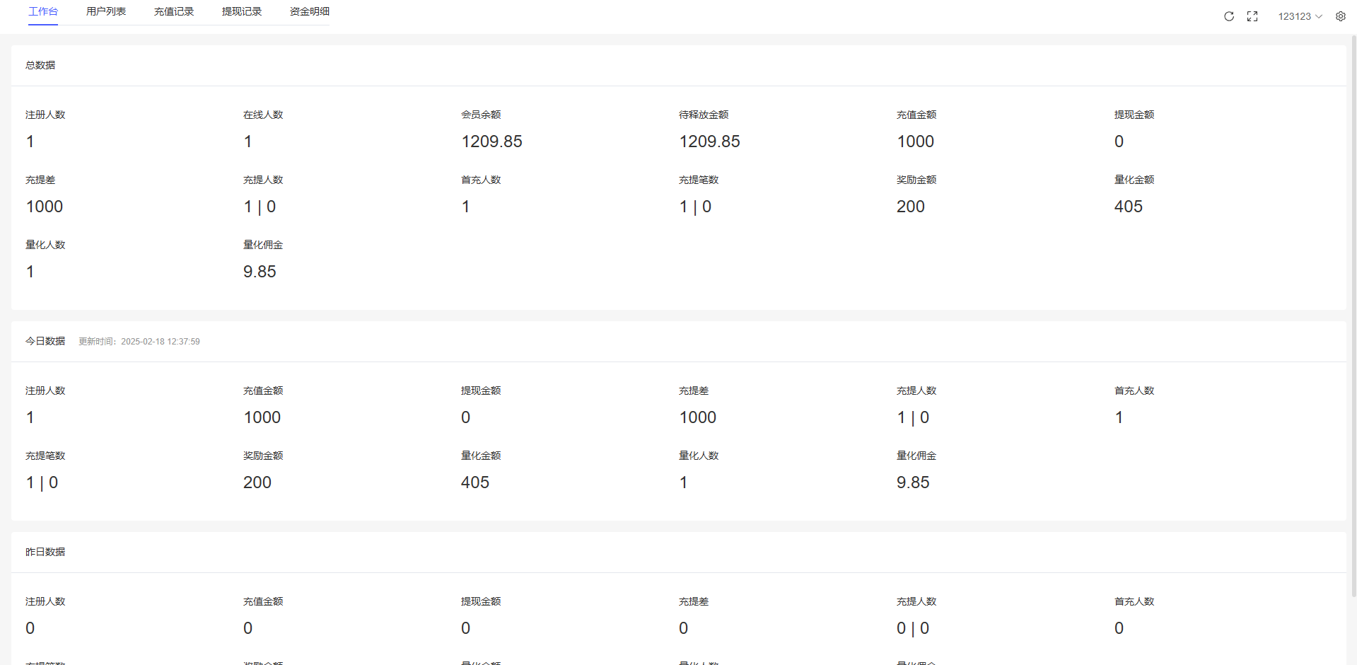 19、代理线功能,后端开启用户为代理,即可登录代理端查看代理下级用户情况