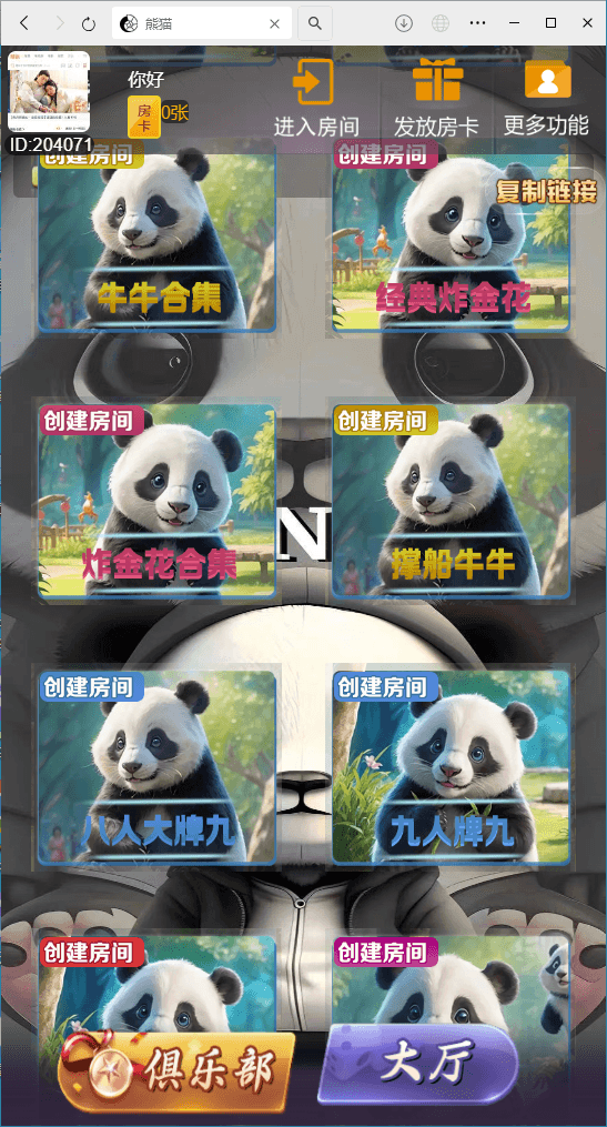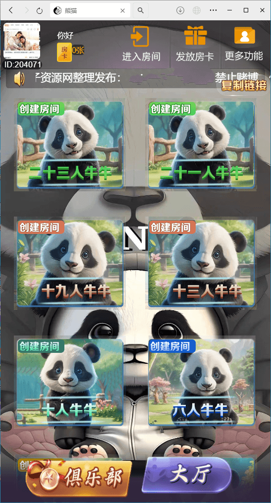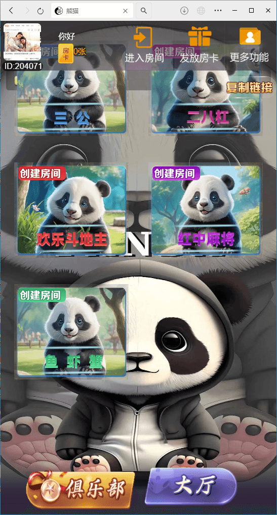 H5棋牌新大圣系列功夫熊猫房卡大厅+文字搭建教程