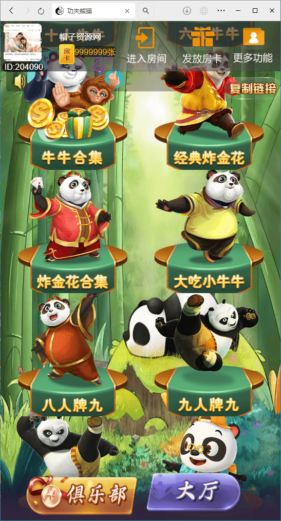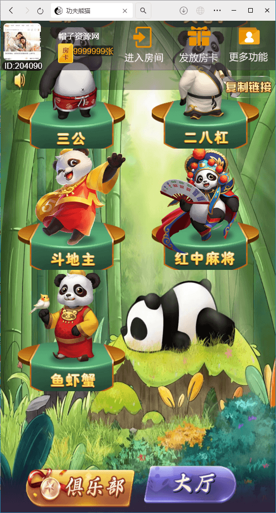 H5棋牌新大圣熊猫房卡大厅+文字搭建教程