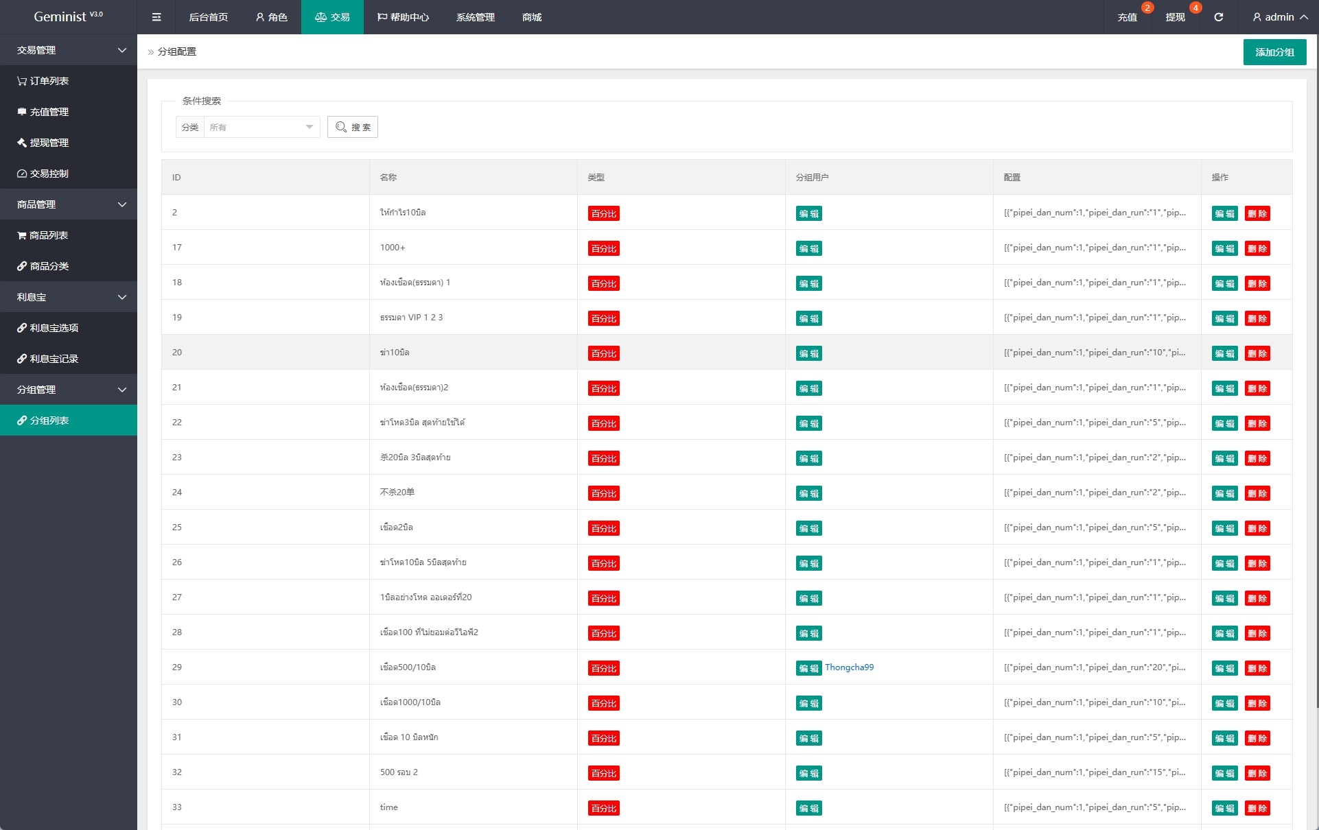 系统功能支持:支持分组、百分比、固定值、连单设置、假人等功能